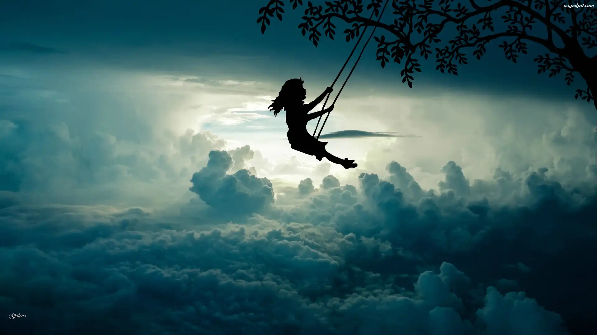 Fantasy, Dziewczynka, Chmury, Niebo, Huśtawka Na Pulpit