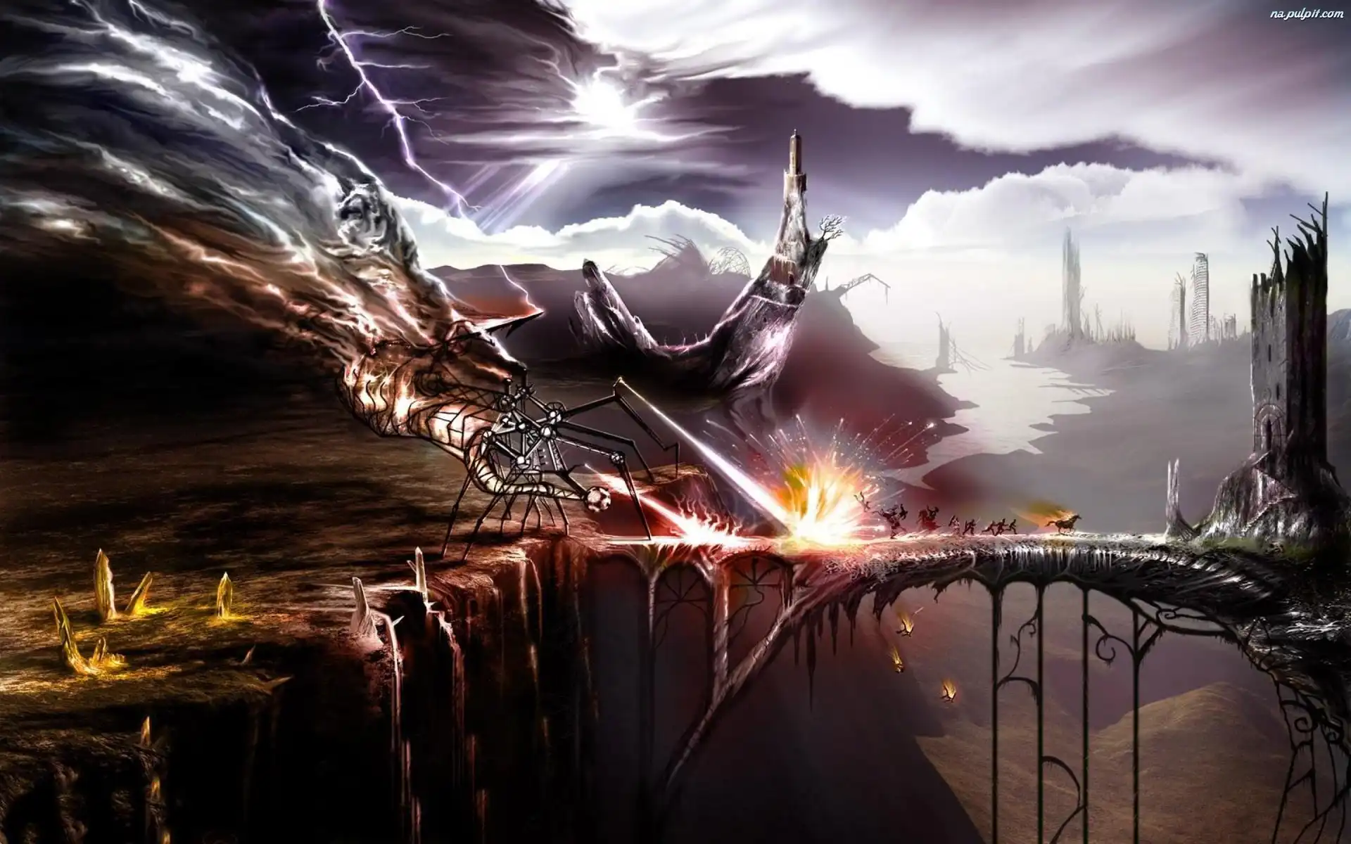 Fantasy, Ucieczka, Most, Niebo, Potwór Na Pulpit