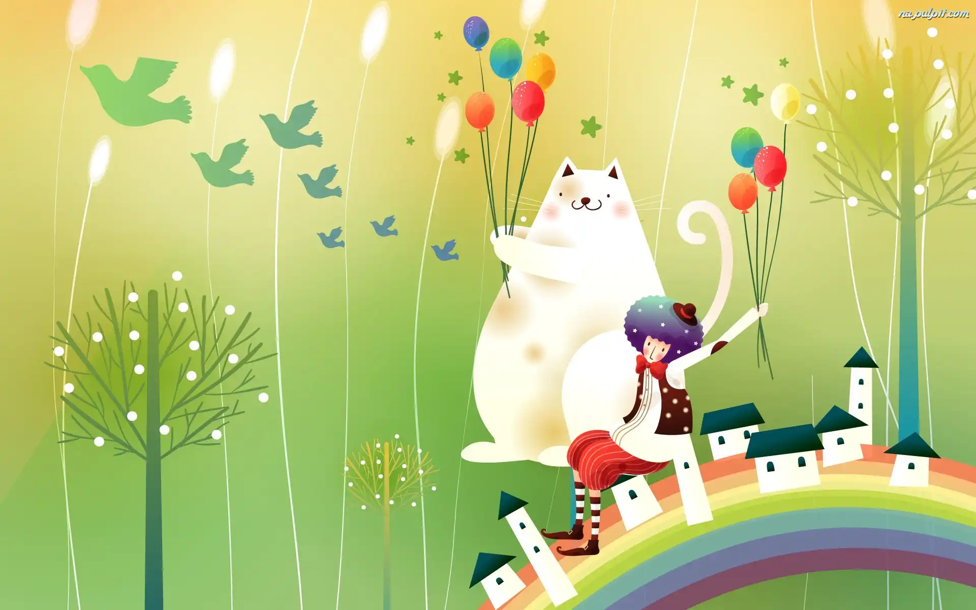 Fantasy, Tęcza, Kot, Pajacyk, Kraina Na Pulpit