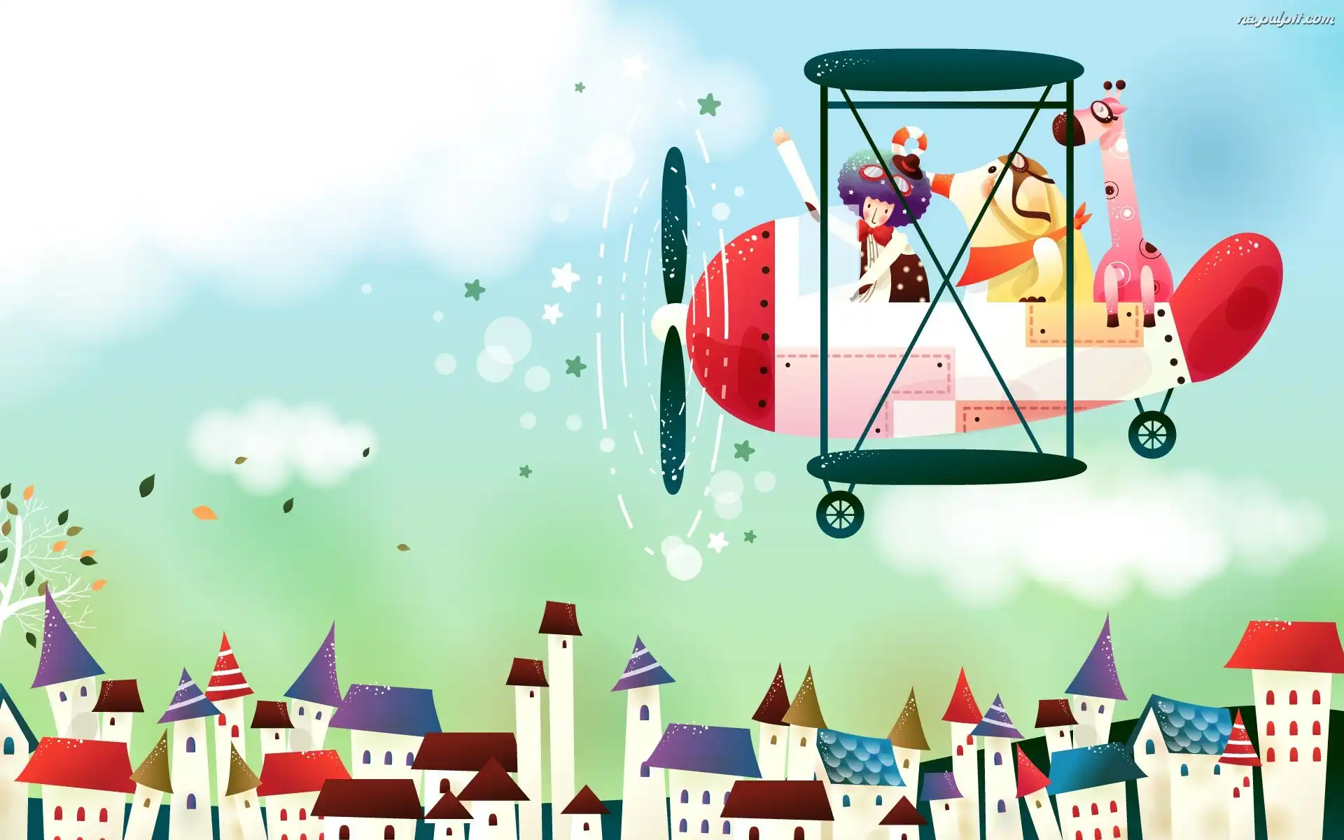 Fantasy, Samolot, Lot, Pajacyk, Kraina