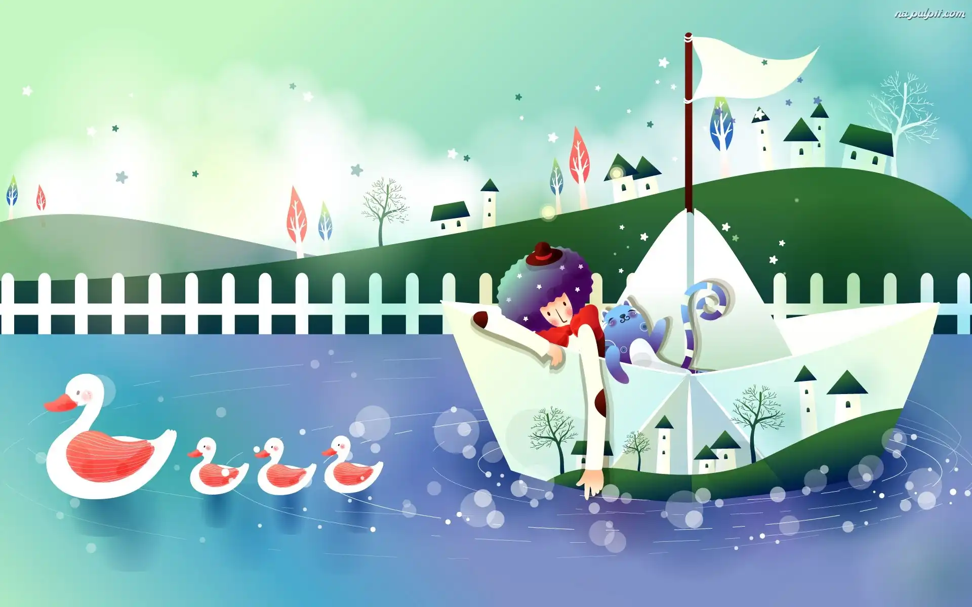 Fantasy, Łódeczka, Rzeka, Pajacyk, Papierowa Na Pulpit