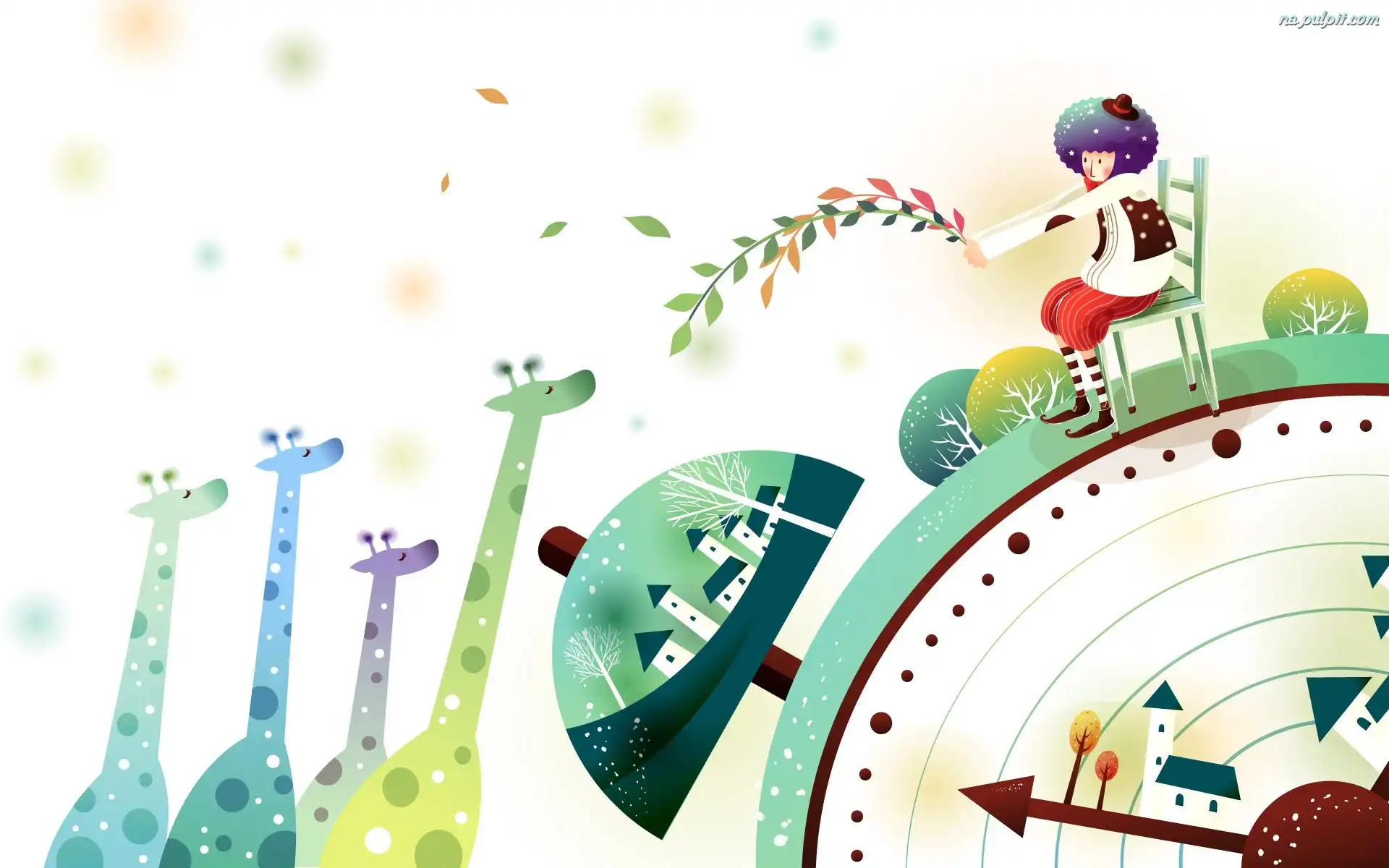 Fantasy, Zegar, Pajacyk, Żyrafy