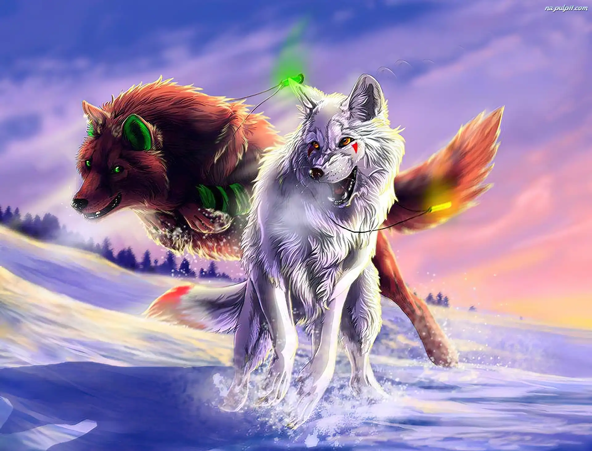 Oczy, Żółto, Kobieta, Fantasy, Niebieskie Dziewczynka, Aniołek Woda, Czerwona, Kobieta, Sukienka Uszy, Wilk, Pysk niebo, Wilk, chmury Czerwony, Feniks Skały, Ziemska, Kula, Woda Wilki, Małe, Dwa, Białe Śnieg, Wyjący, Wilk Bańki, Ogniste, Kobieta, Włosy Pustynia, Statek, Neosurrealizm, Skała Lodowa, Wróżka Całus, Wilki, Języki Lew, Orzeł, Pół, Pół