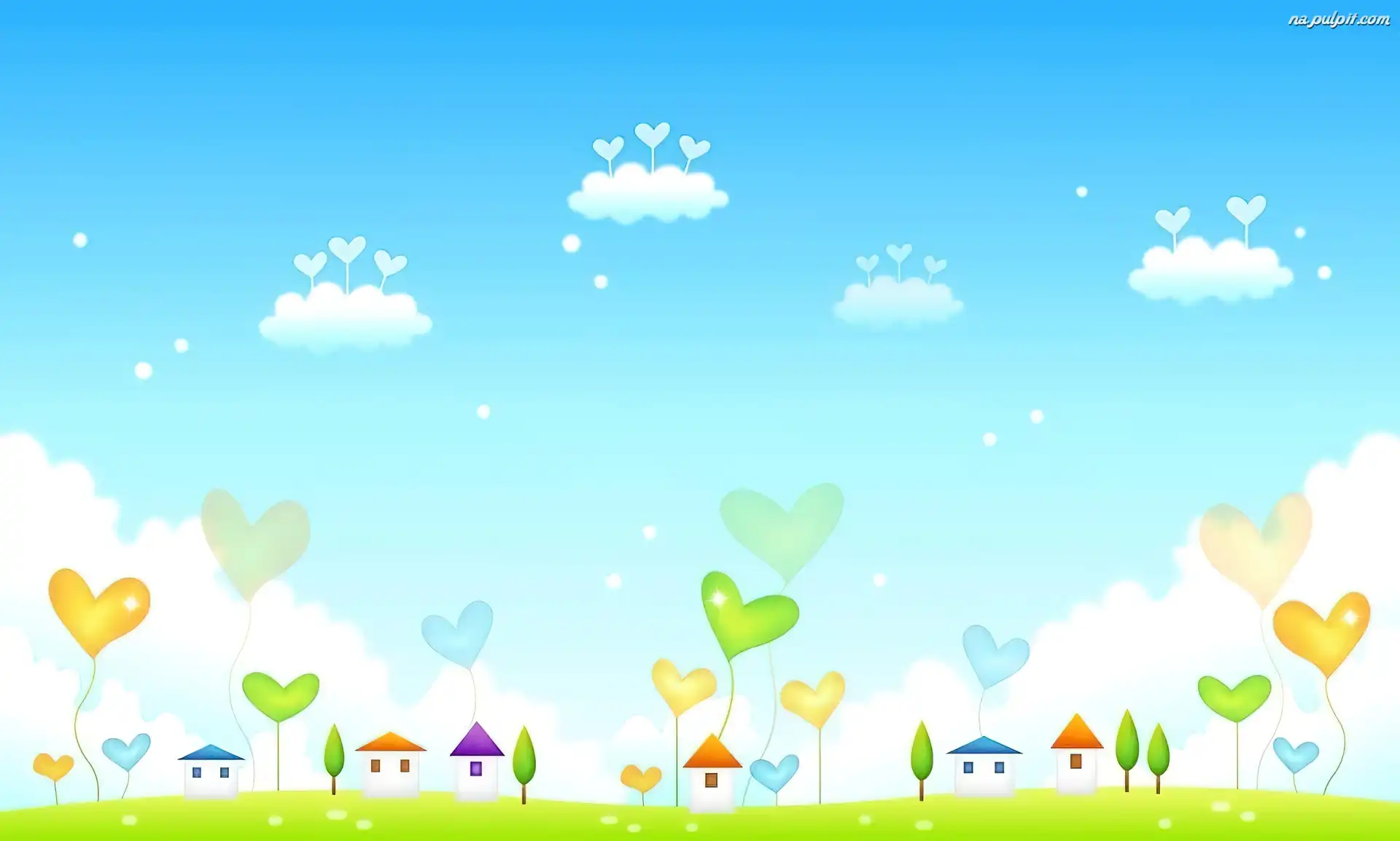 Fantazja, Serca, Drzewa, Domki, Chmury Na Pulpit