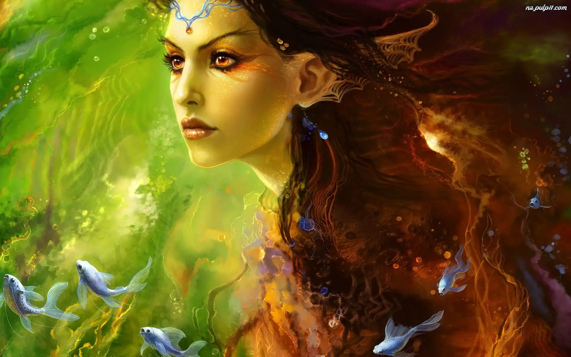 Fantazja, Dziewczyna, Piękna, Rybki Na Pulpit