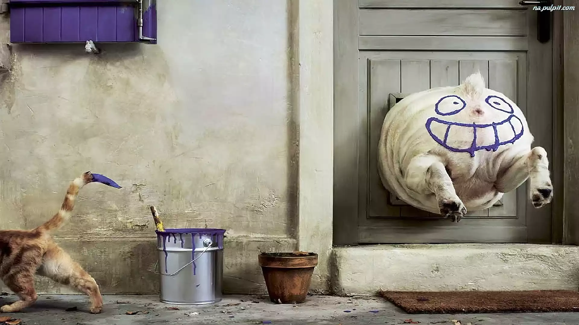 Farba, Drzwi, Malunek, Pies, Kot Na Pulpit