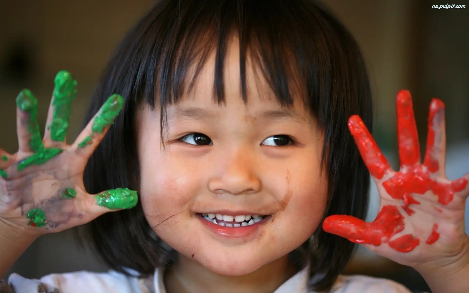 Farby, Brudne, Dziewczynka, Dziecko, RÄ…czki Na Pulpit