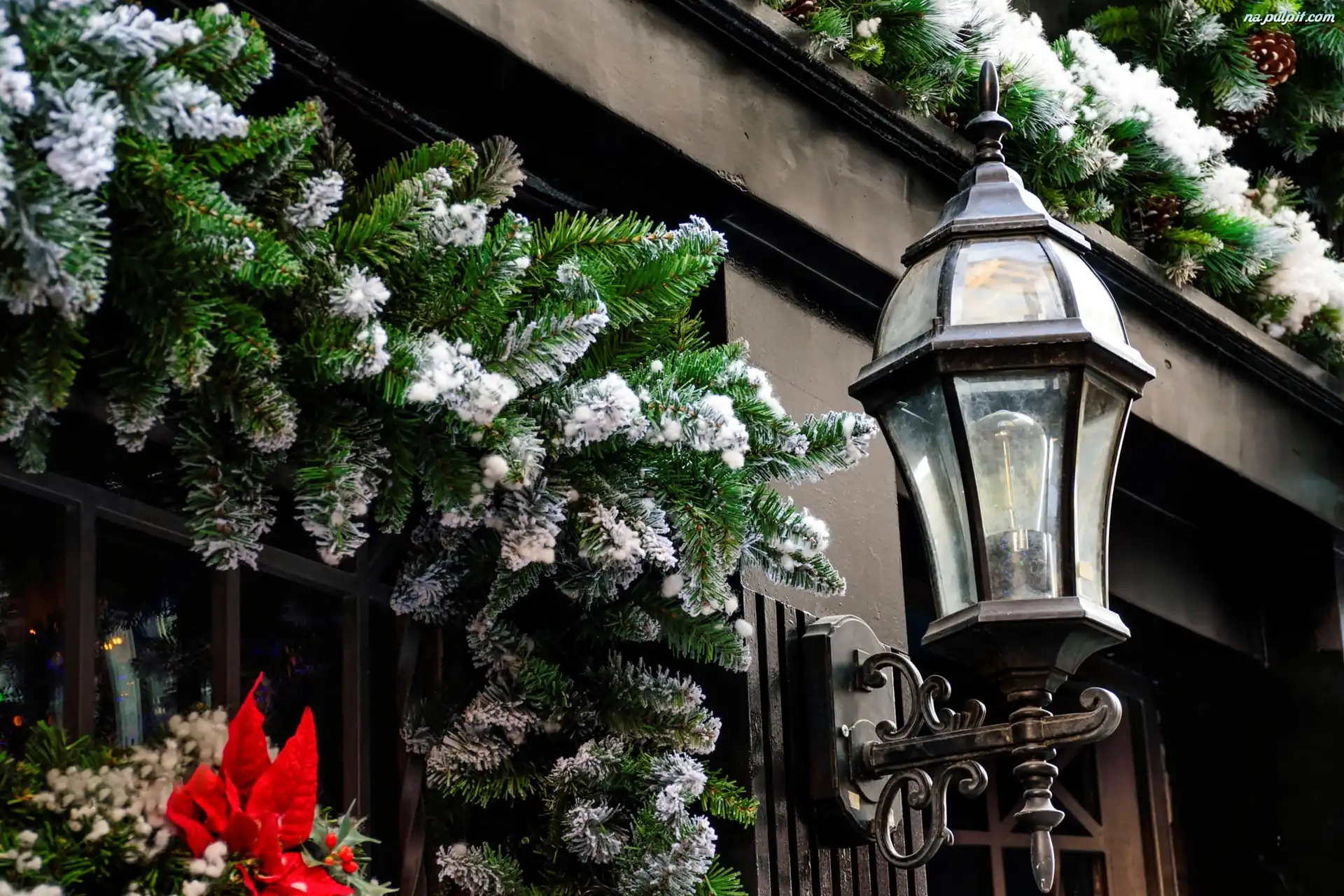 Fasada, Gałązki, Latarnia, Świąteczna, Dom, Dekoracja