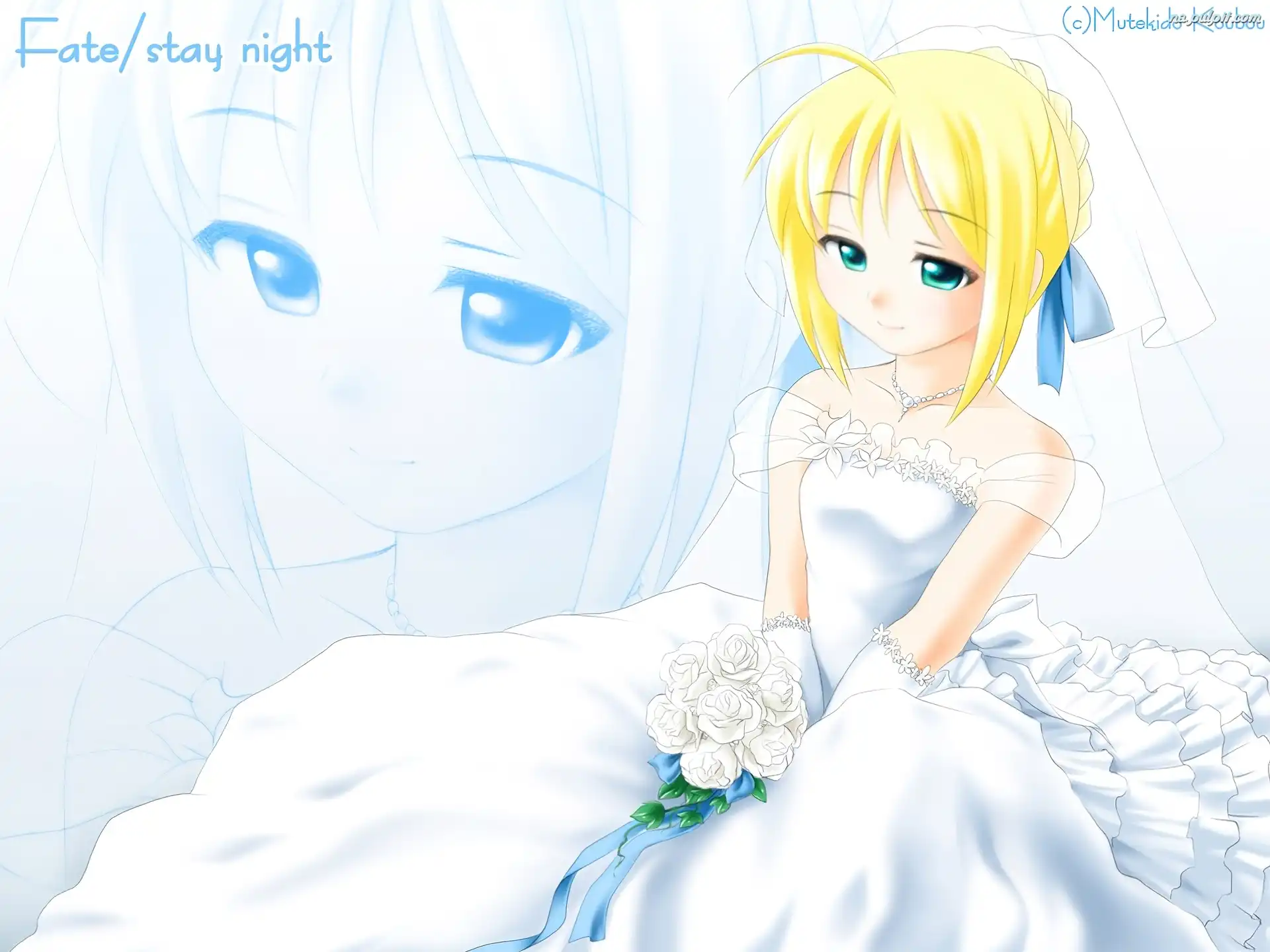 kwiatki, Fate Stay Night, dziewczyna, welon, panna młoda Na Pulpit