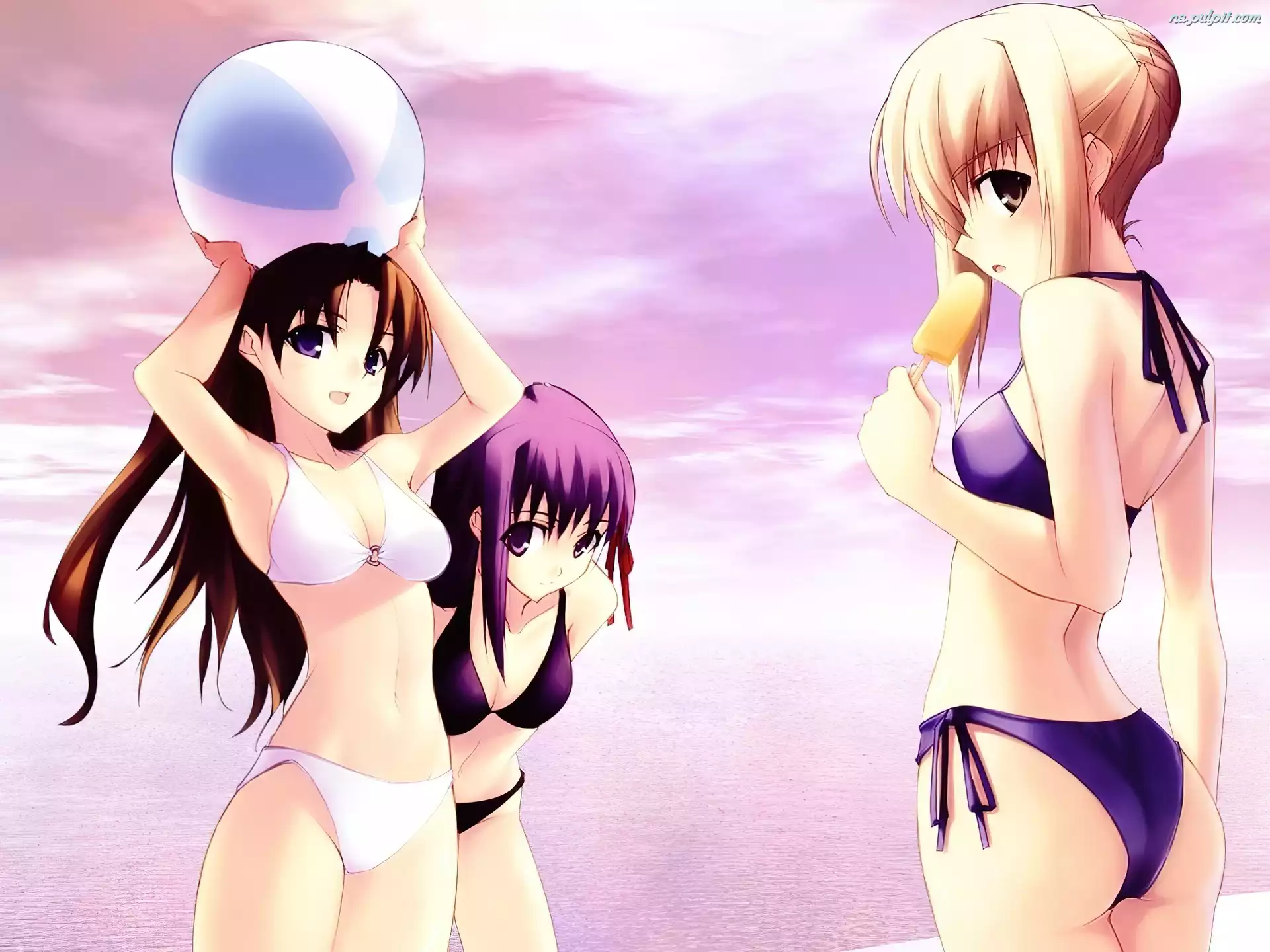Fate Stay Night, plaża dziewczyny Na Pulpit