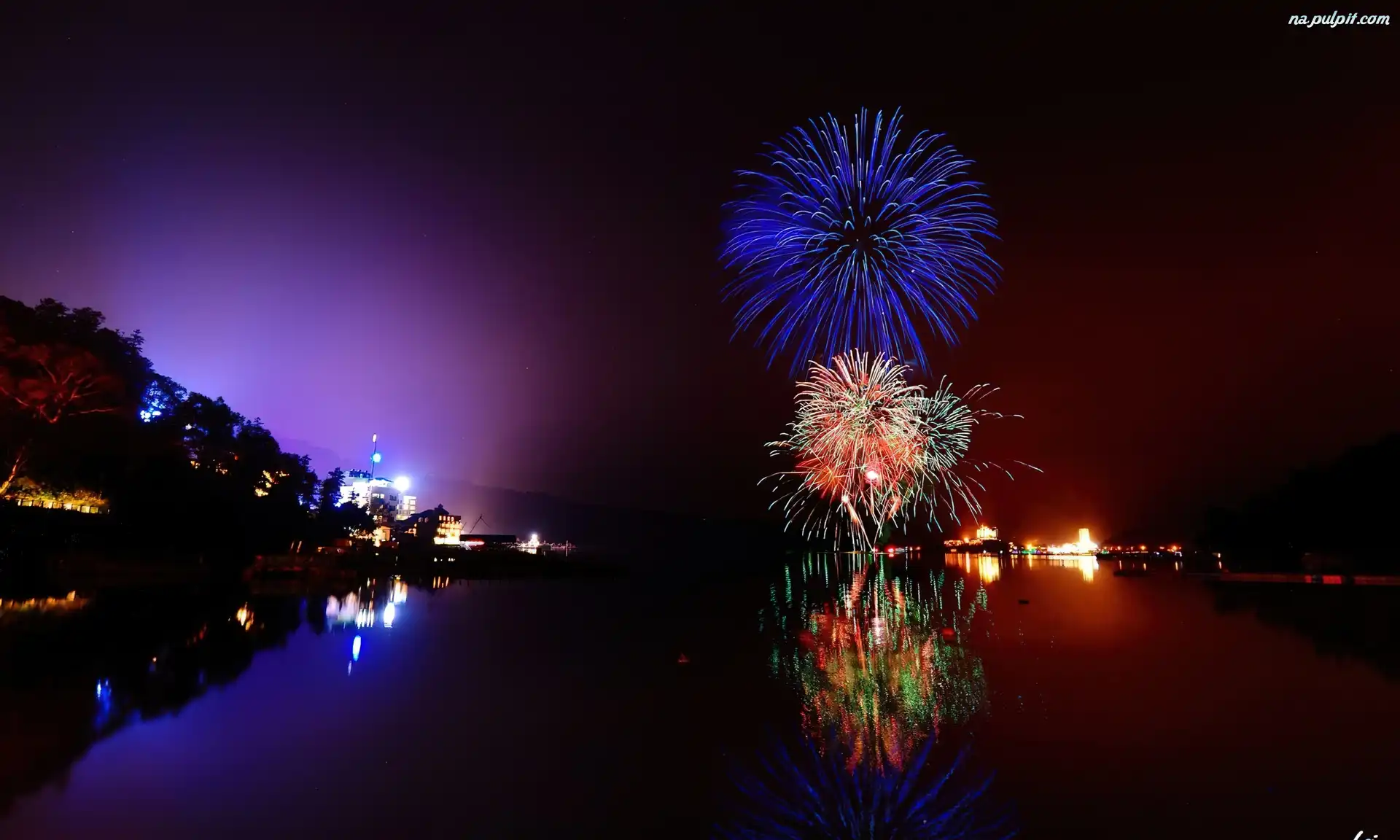 Fejerwerki, Miasto, Jezioro, Noca Na Pulpit