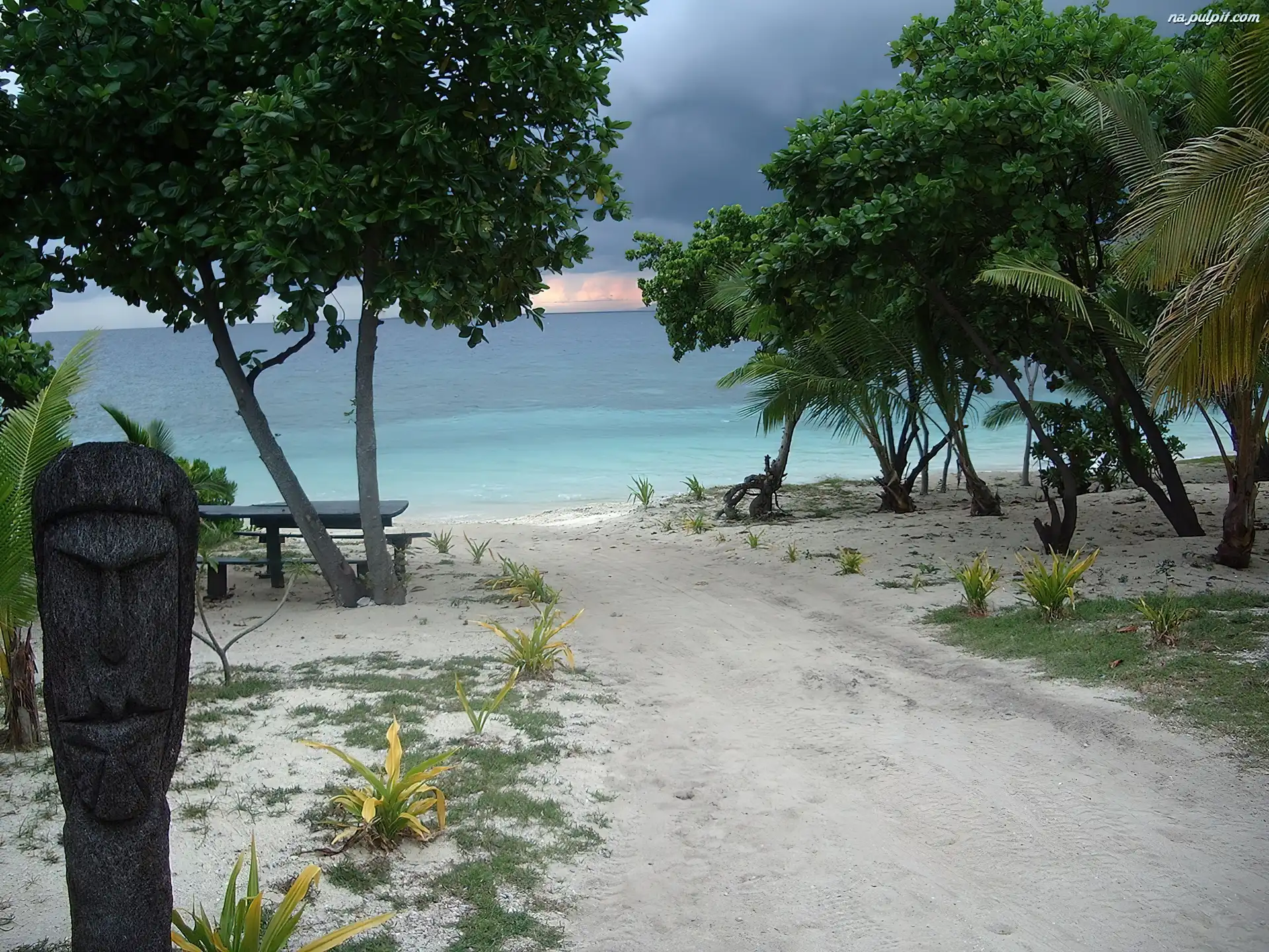 Fidżi, Ławeczka, Plaża, Morze, Drzewa