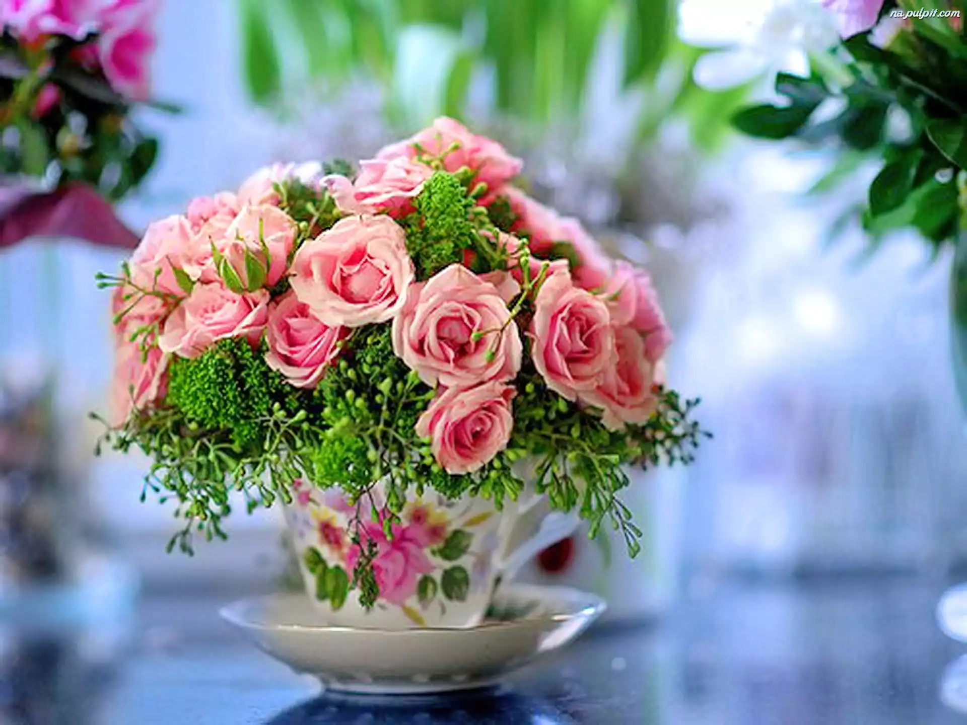 Róże, Filiżanka, Bukiecik Na Pulpit