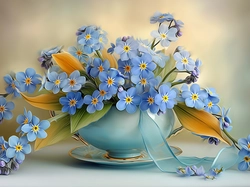 Niezapominajki, Filiżanka, Wstążka, Grafika AI