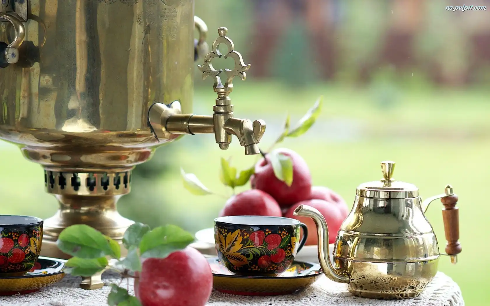 Filiżanki, Herbata, Samowar, Jabłka Na Pulpit