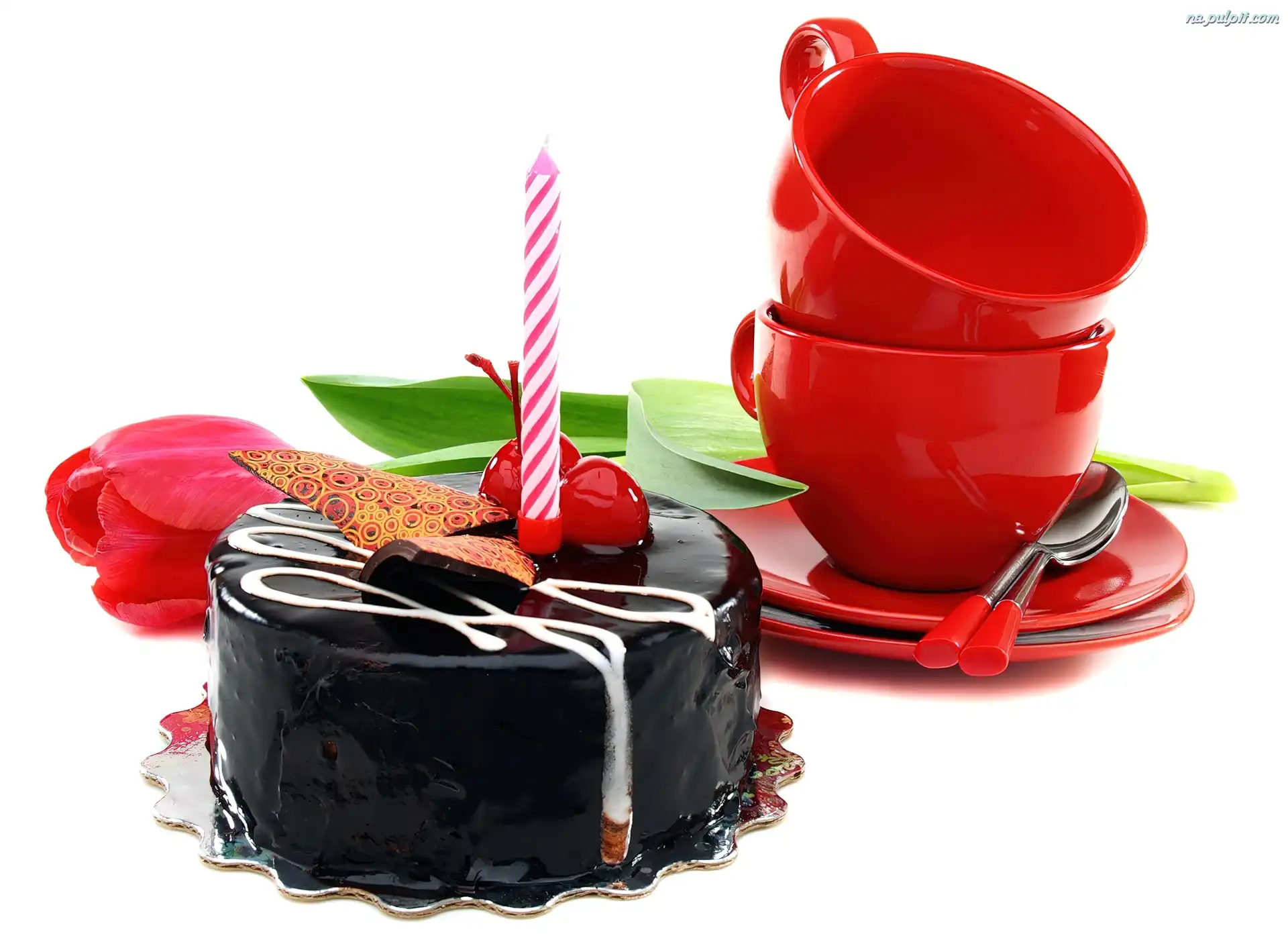 Filiżanki, Urodzinowy, Torcik, Świeczka Na Pulpit