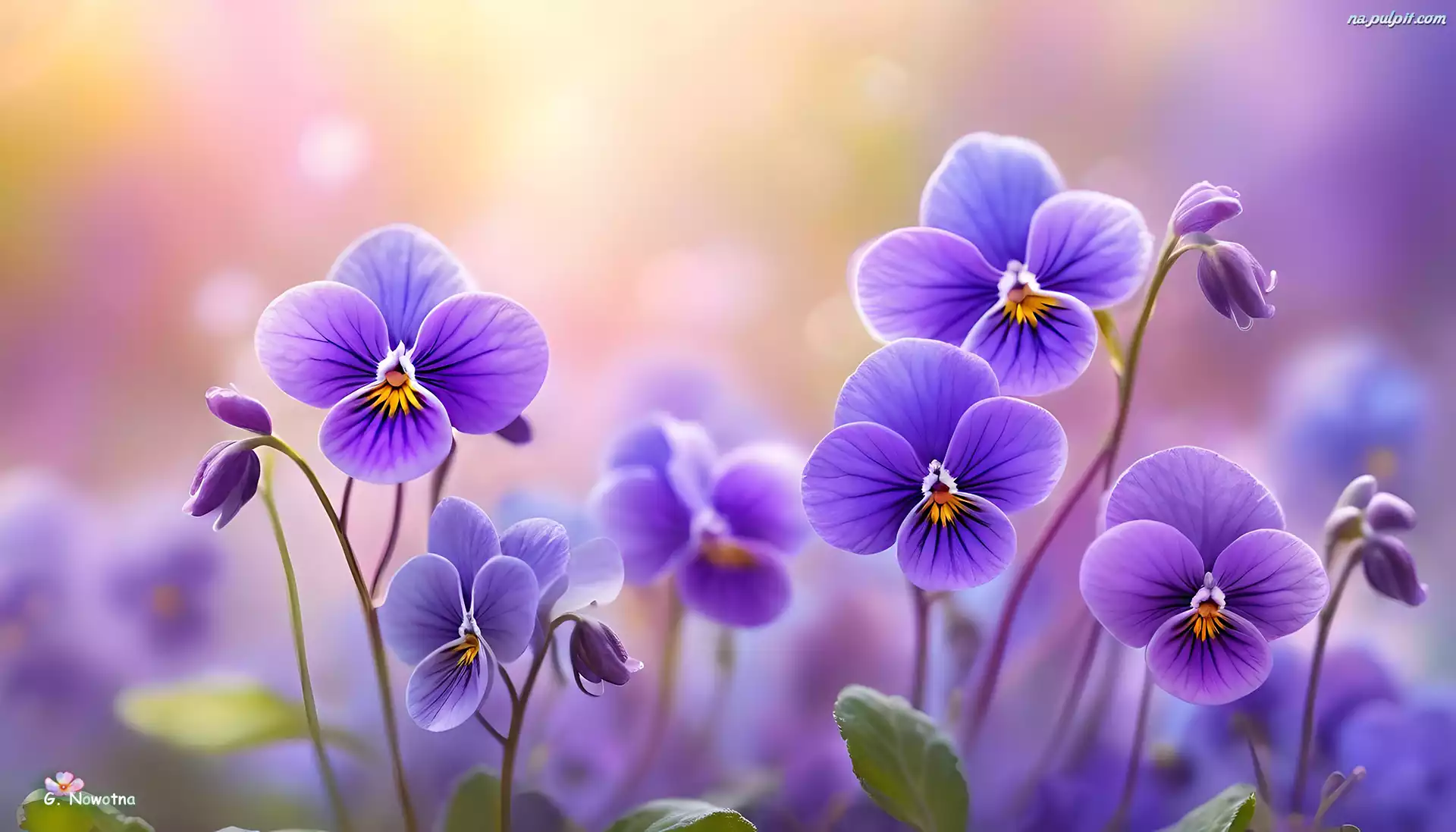 Kwiaty, Fioletowe, Bratki, Grafika, PÄ…ki Na Pulpit