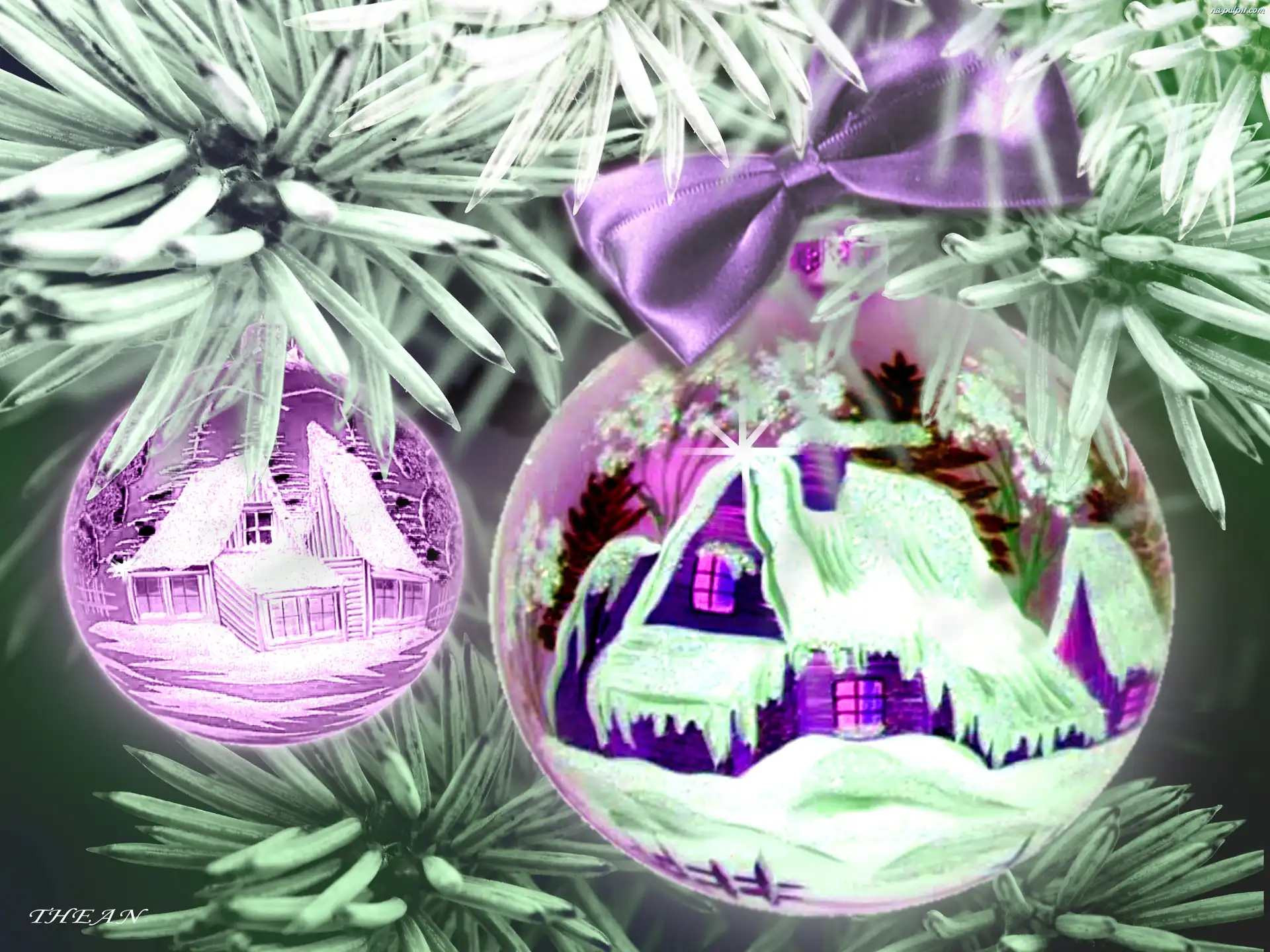 Choinka, Fioletowe, Bombki