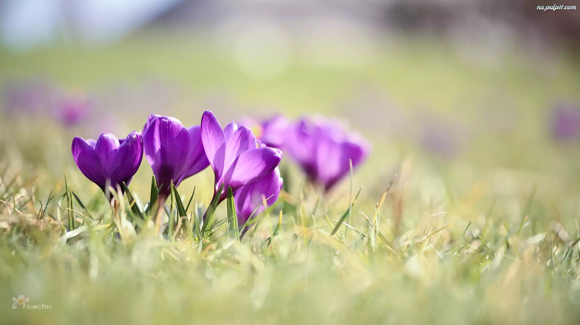 Kępka, Fioletowe, Krokusy, Trawa, Kwiaty Na Pulpit