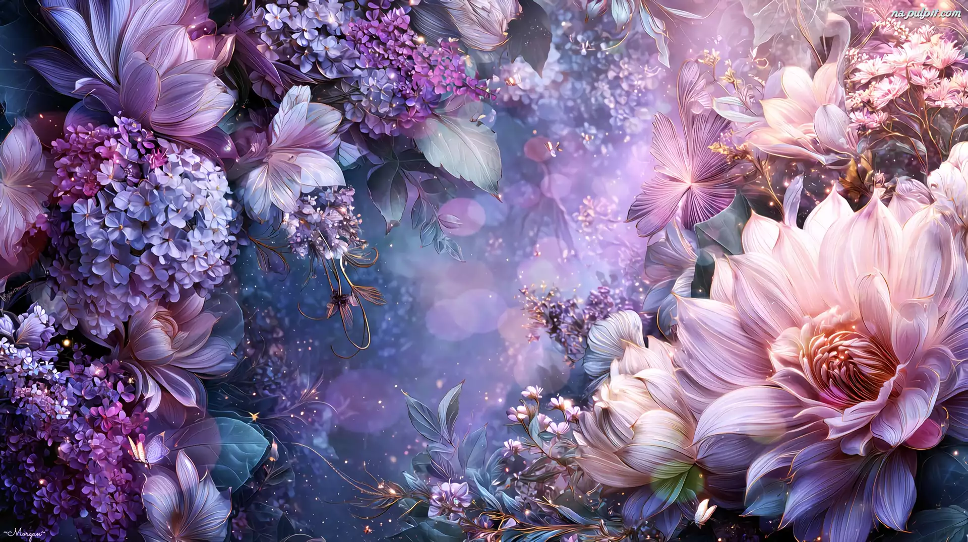 Jasnoróżowe, Fioletowe, Kwiaty, Grafika AI Na Pulpit