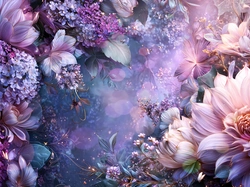 Jasnoróżowe, Fioletowe, Kwiaty, Grafika AI