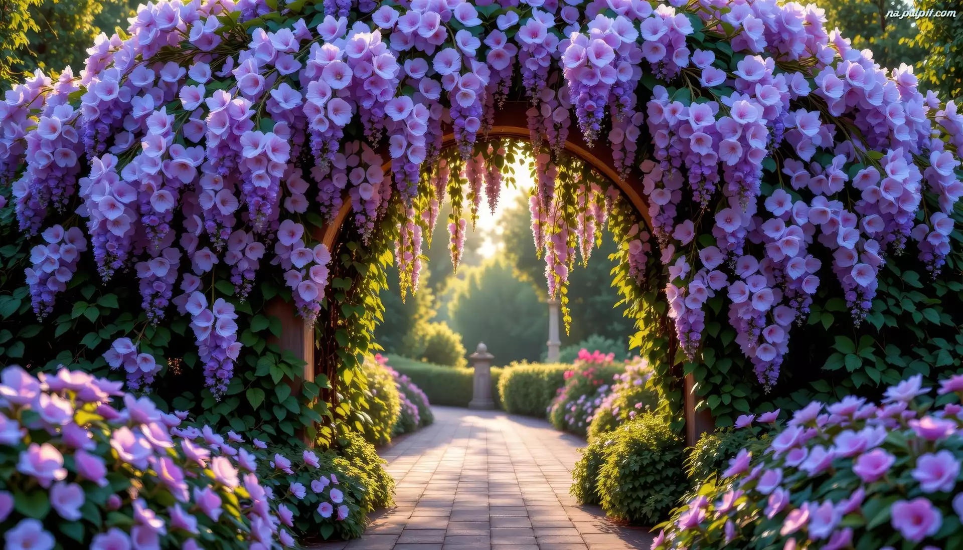 Łuk, Fioletowe, Kwiaty, Grafika AI Na Pulpit