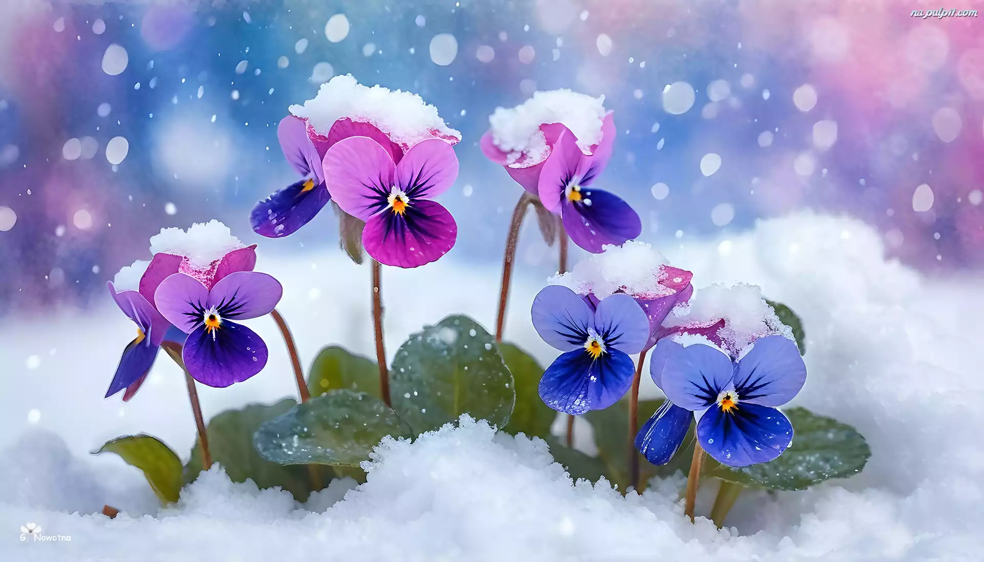 Åšnieg, Fioletowe, Niebieskie, Grafika, Bratki Na Pulpit