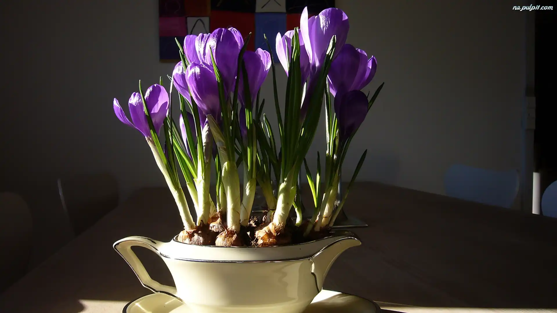 Porcelana, Fioletowe, Krokusy Na Pulpit