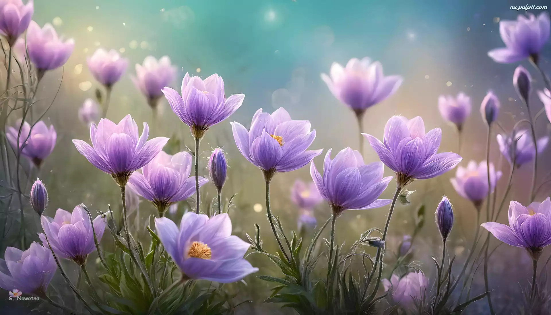 Pąki, Fioletowe, Rozkwitające, Grafika, Kwiaty