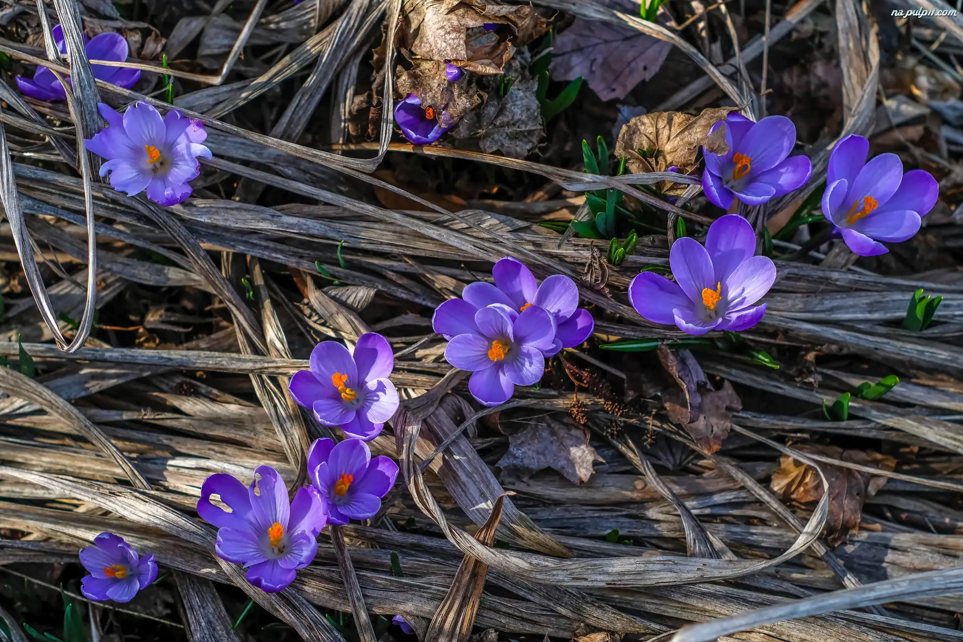Wiosna, Fioletowe, Krokusy Na Pulpit