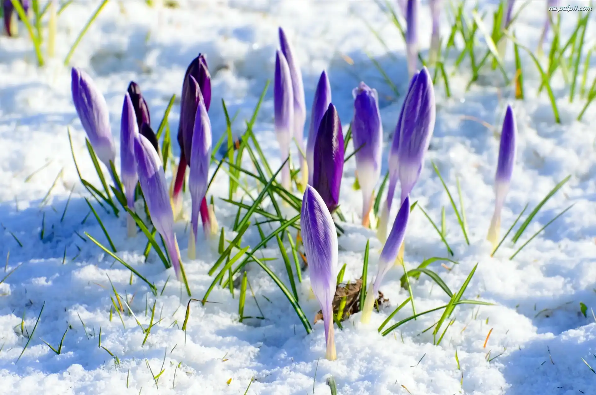 Zima, Fioletowe, Krokusy Na Pulpit