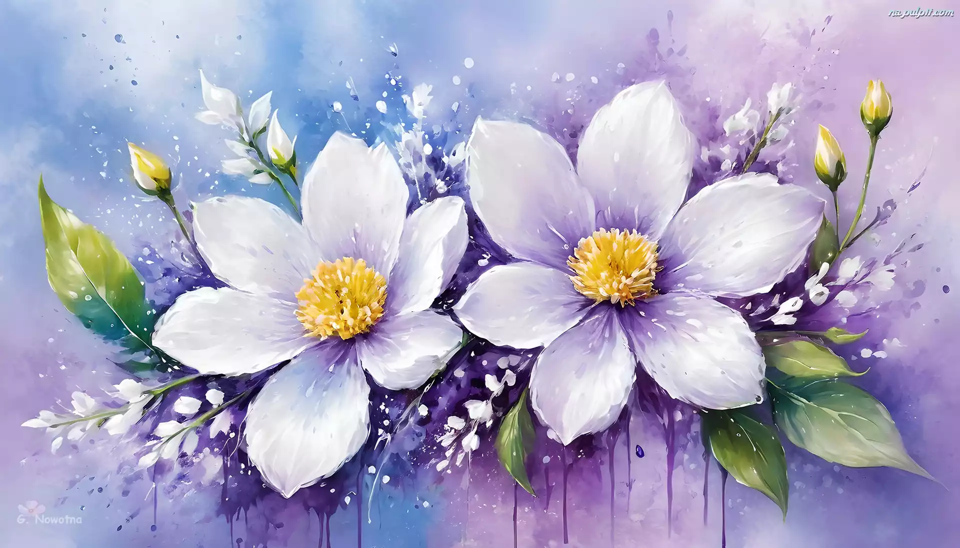 Kwiaty, Fioletowo-niebieskie, Tło, Grafika