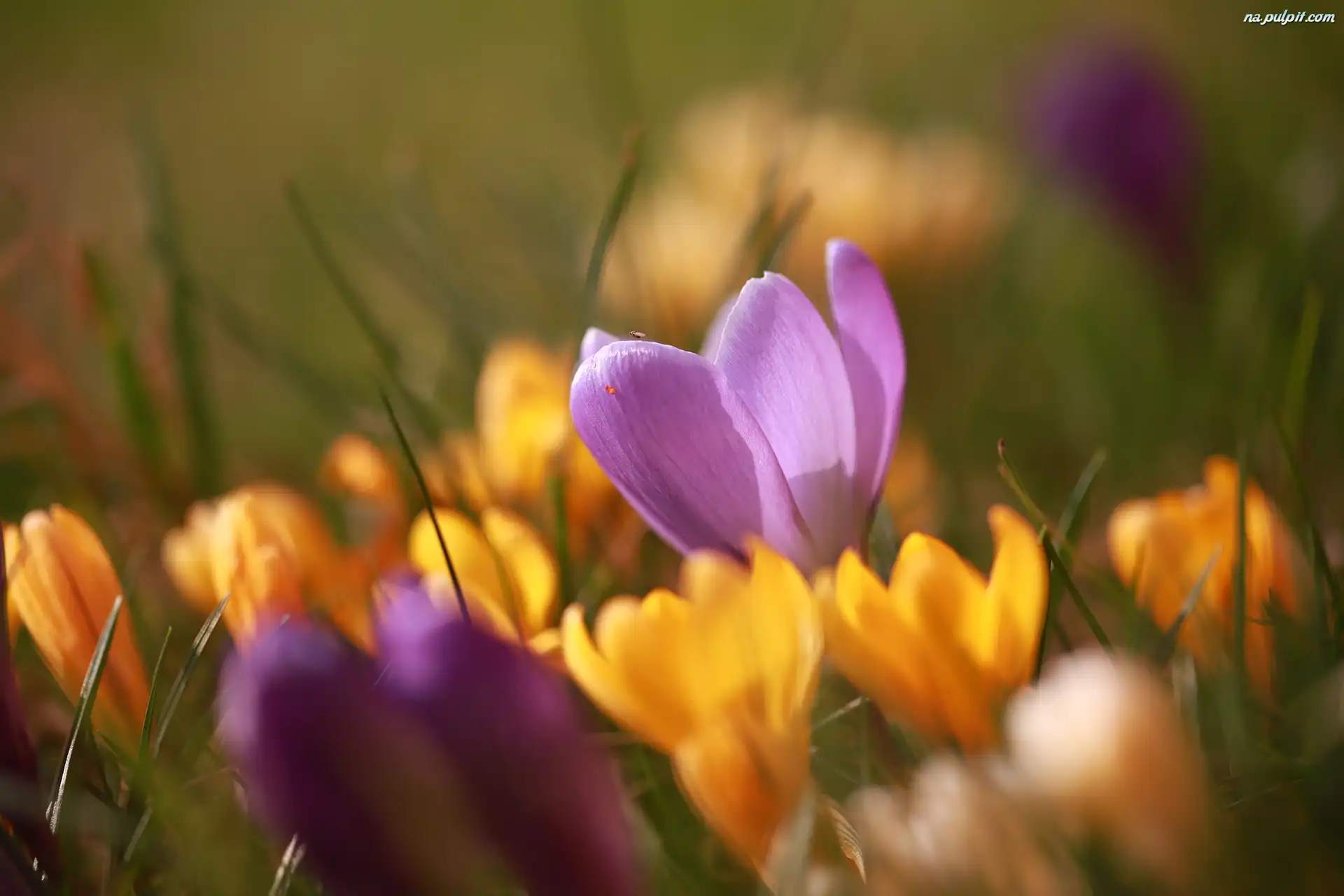 Muszka, Fioletowy, Krokus, Krokusy, Kwiaty