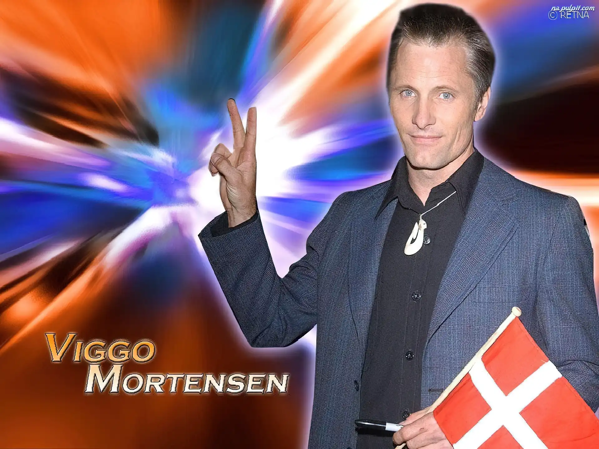 flaga, Viggo Mortensen, czarna koszula Na Pulpit