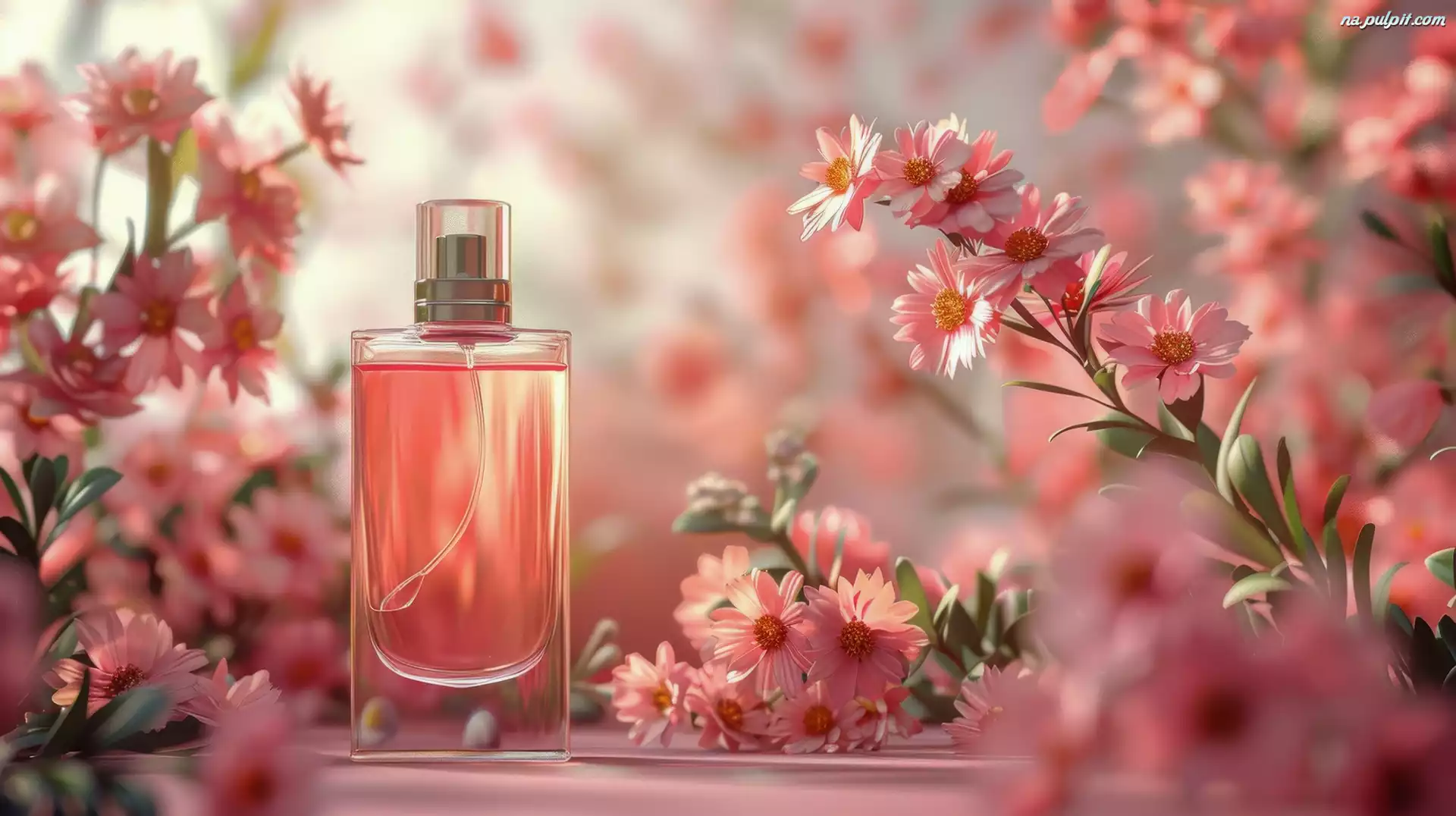 Kwiaty, Flakon, Perfumy, Kompozycja, Różowe Na Pulpit