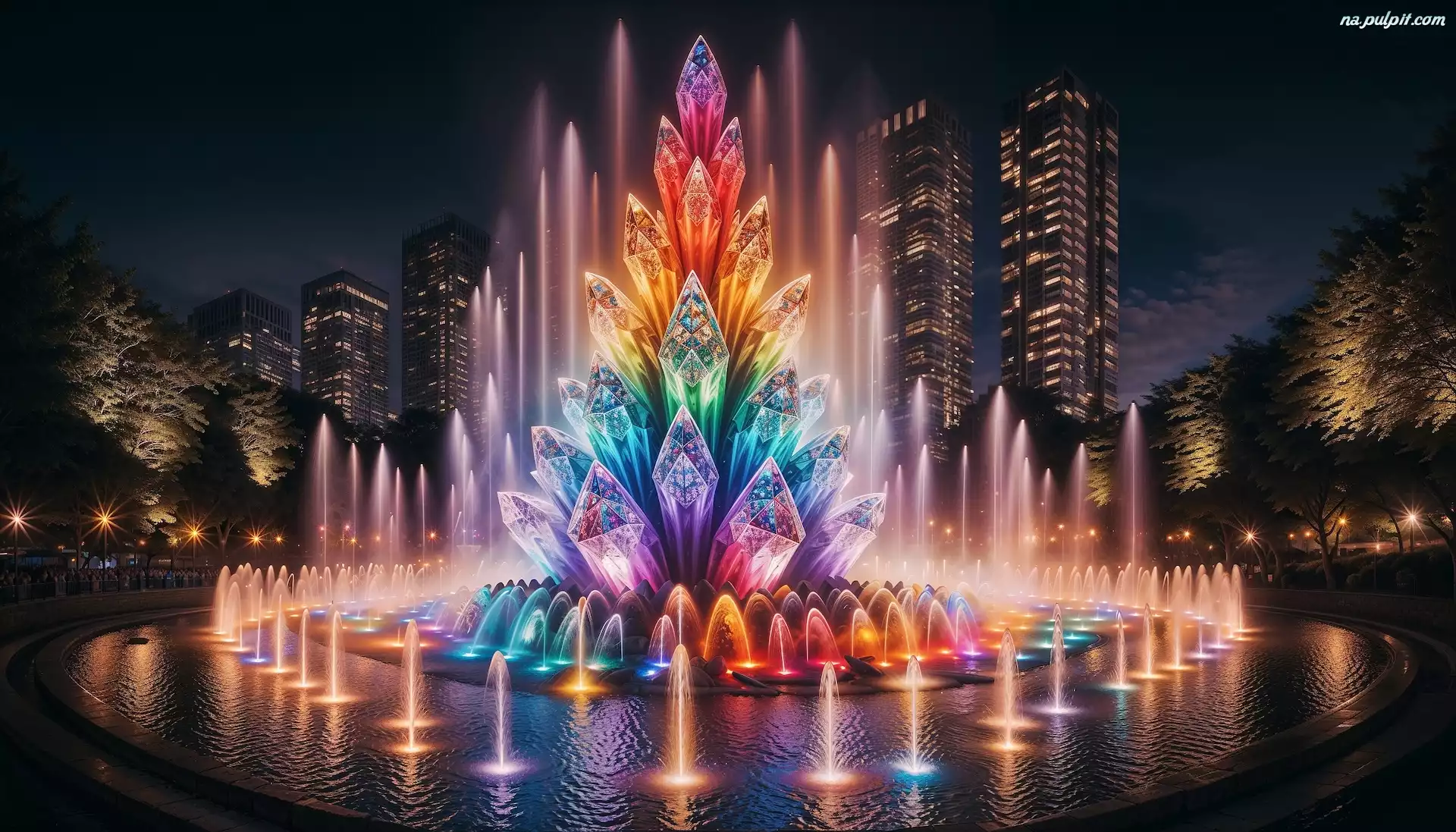 Światła, Grafika, Wieżowce, Fontanna, Miasto, Kolorowe Na Pulpit