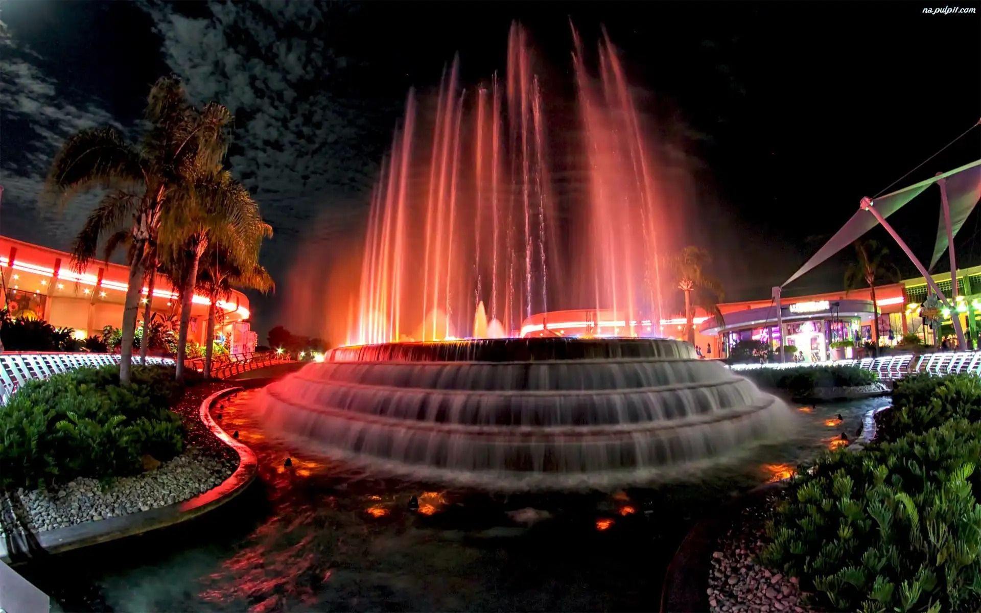 Fontanna, Nocą, Miasto, Kolorowa Na Pulpit