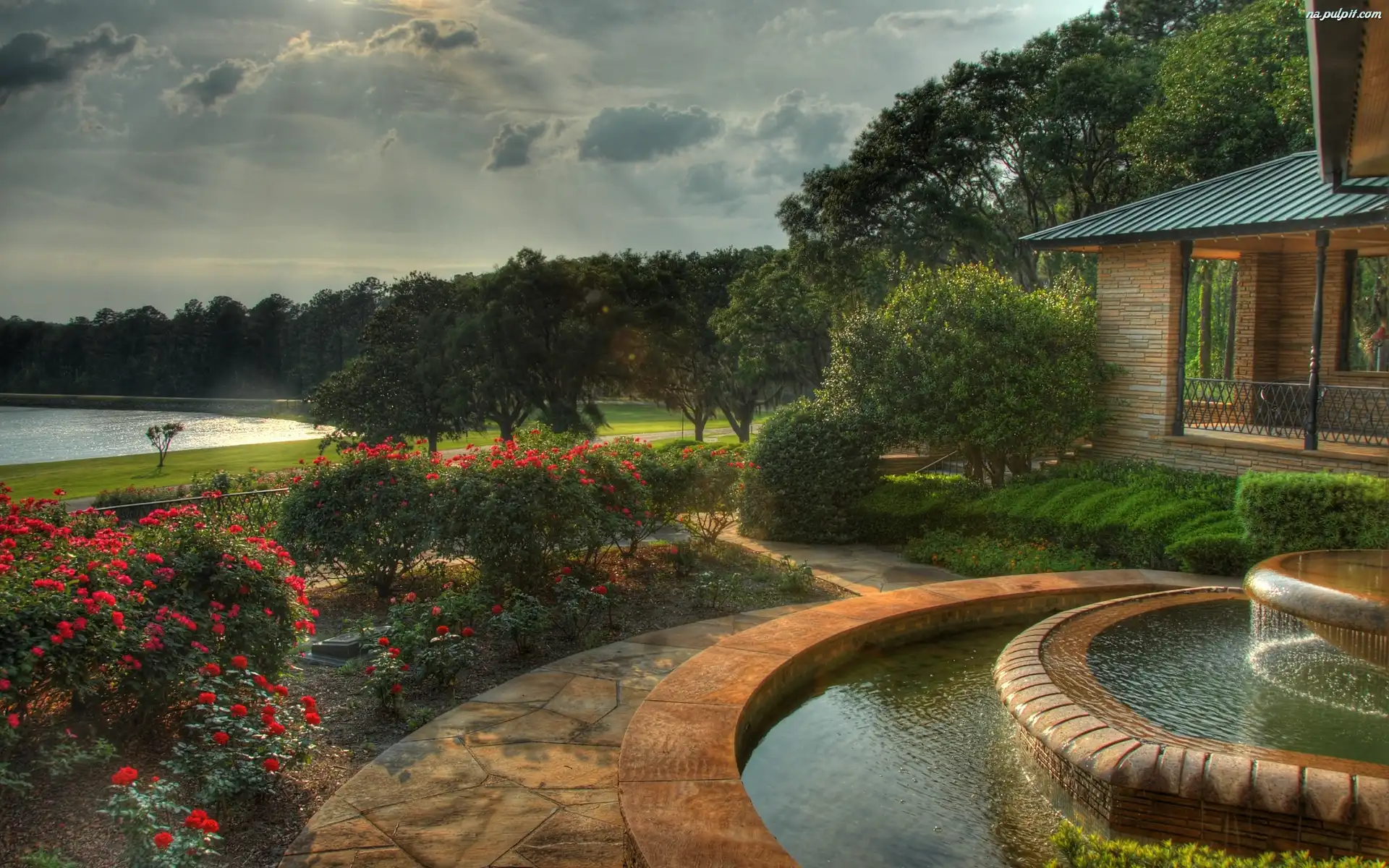 Drzewa, Domy, Kamienie, Rzeka, Kościół Miasteczko, Grafika Palmy, Dom, Witraże Rzeka, Kamienny, Domy, Most Chatka, Laos, Rzeka, Czółna Fontanny, Peterhof, Rosja, Wielki Pałac Budowle, Alpy, Dolomity, Góry, Białe Fontanna, Patio Ogród, Japoński Basen, Posiadłość, Góry, Wiata Mostek, Krzewy, Zielone, Ogród, Drzewa Dom, Kwitnąca, Wiśnia Kwiatki, Ogród, Domek, Las, Różne Dom, Kwiaty, Ptak, Fontanna