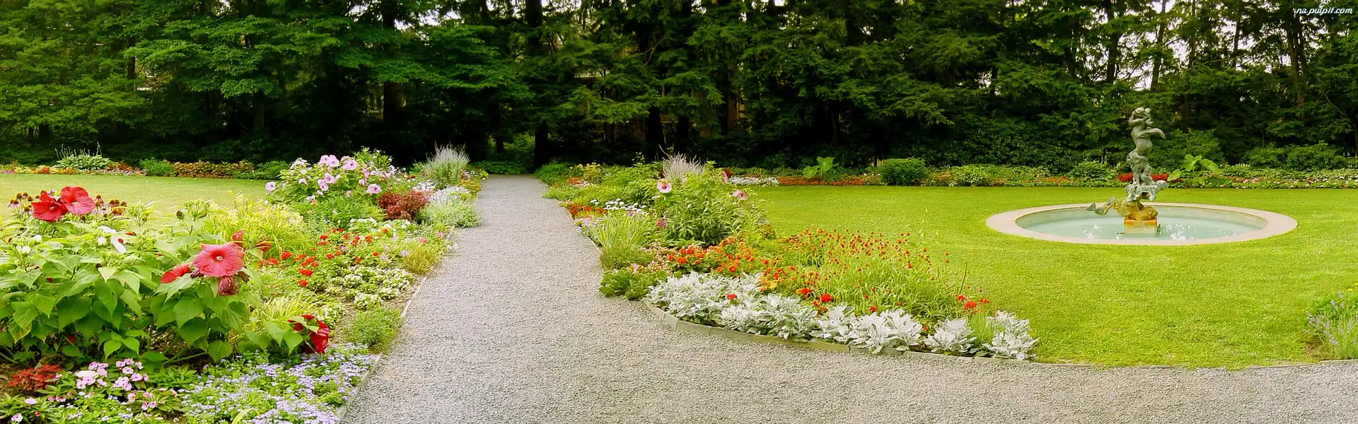 Fontanna, Kwiaty, Ogród, Zieleń Na Pulpit