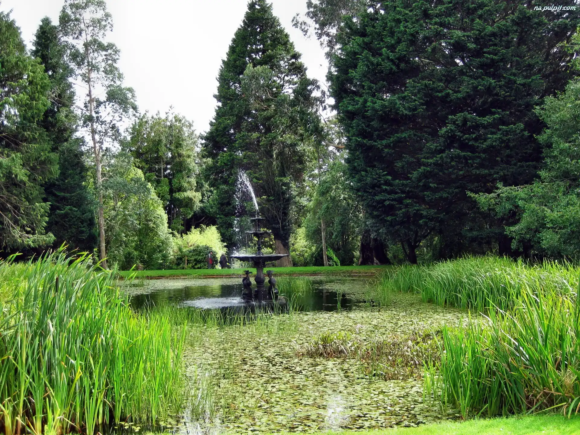 Fontanna, Staw, Park, Zarośla Na Pulpit