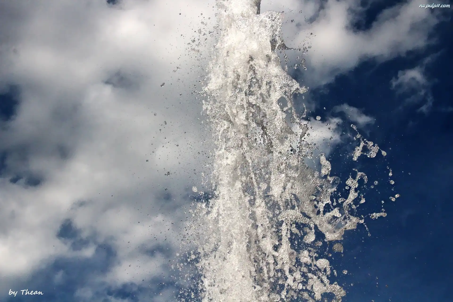 Fontanna, Woda, Rozpryśnięta, Chmury