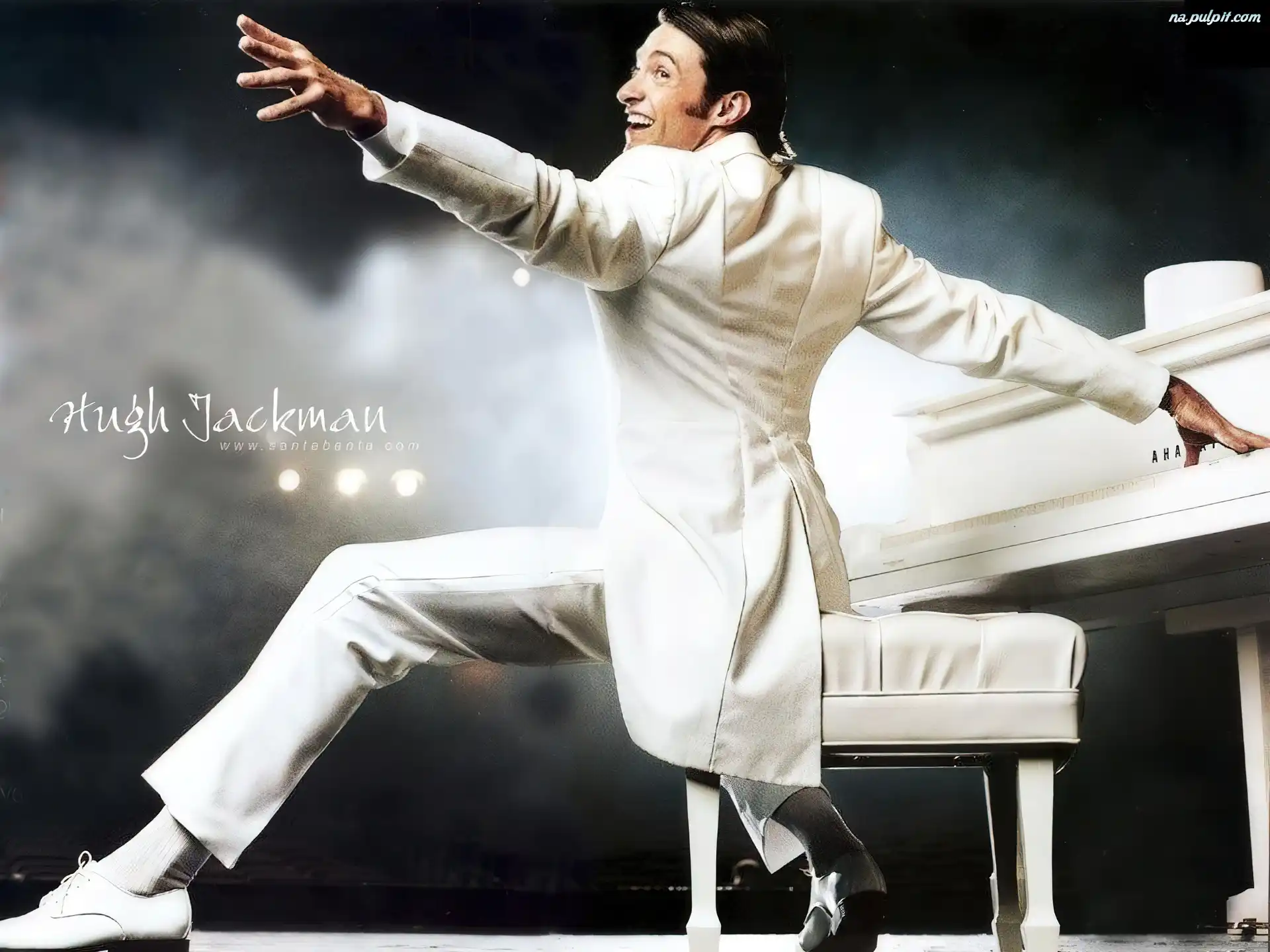 fortepian, Hugh Jackman, biały strój Na Pulpit