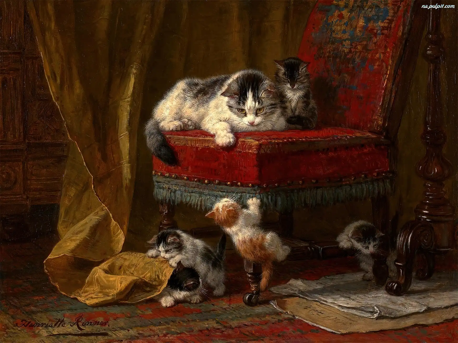 Fotel, Rodzinka, Koty, Zabawa Na Pulpit