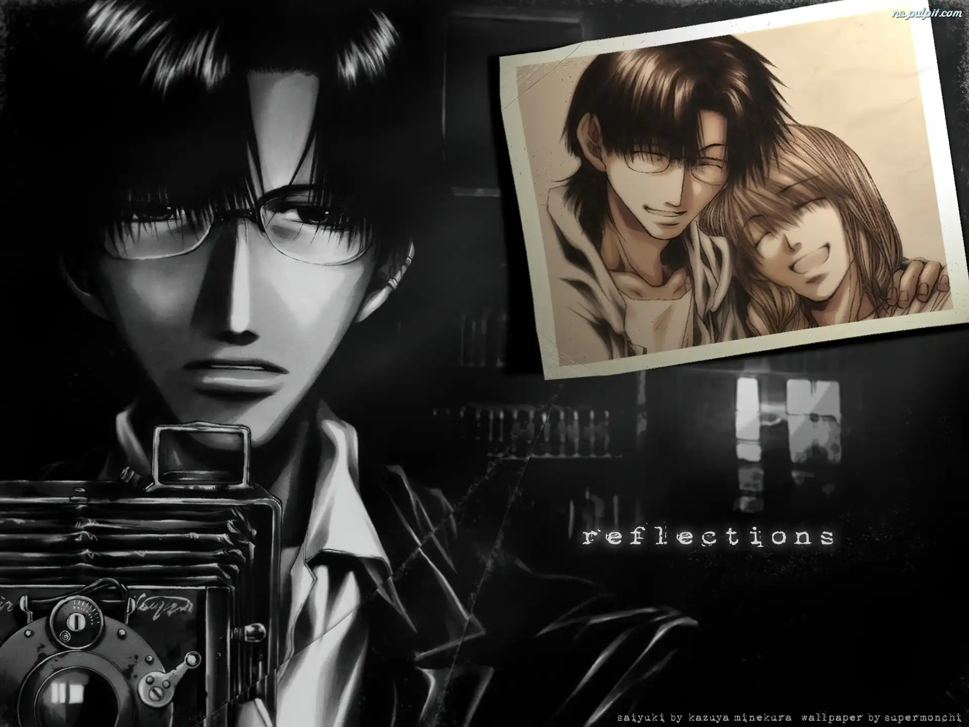 fotografia, aparat, Saiyuki, ludzie Na Pulpit