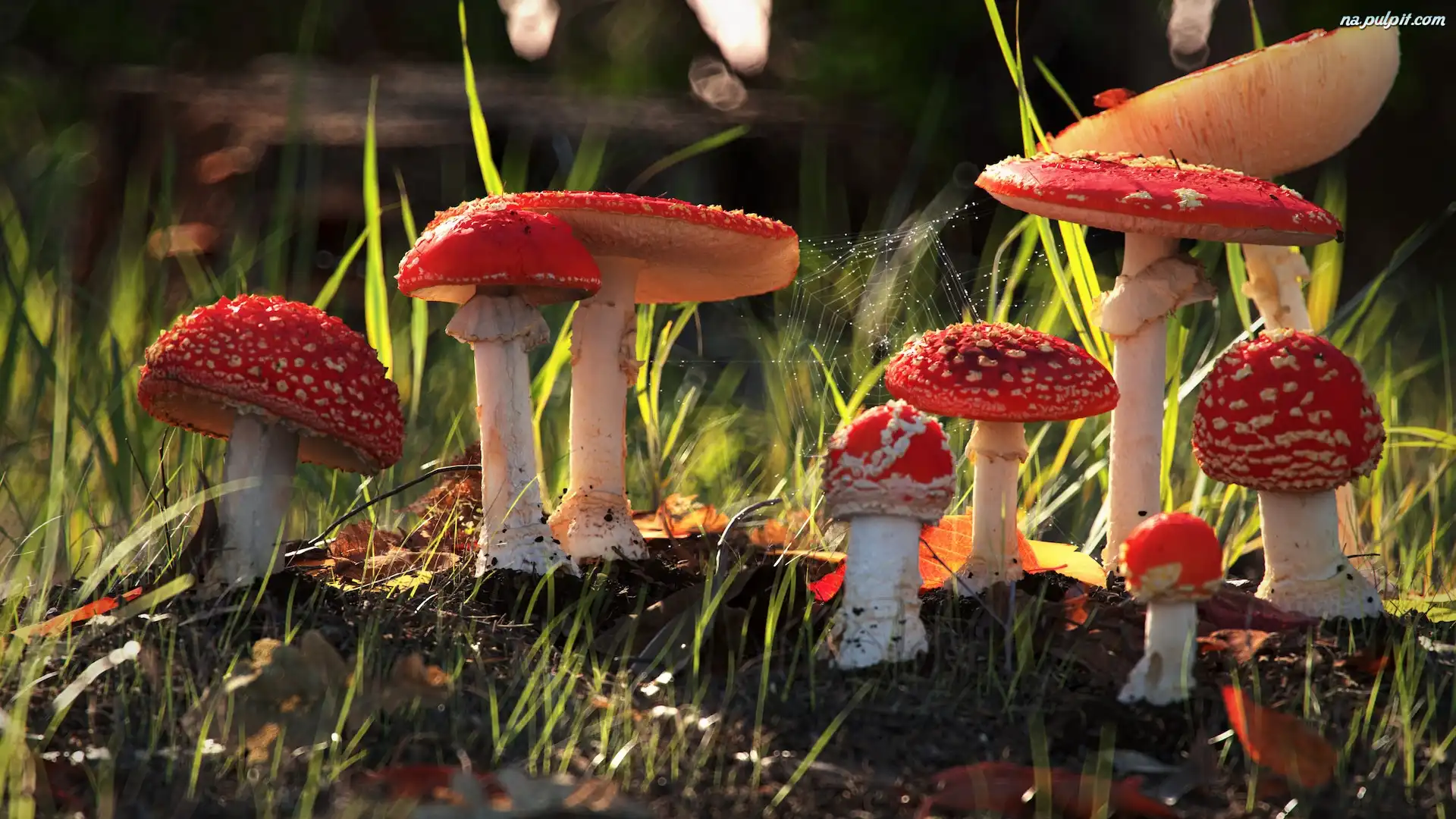 Fotomontaż, Pajęczyna, Muchomory, Grzyby, Trawa Na Pulpit