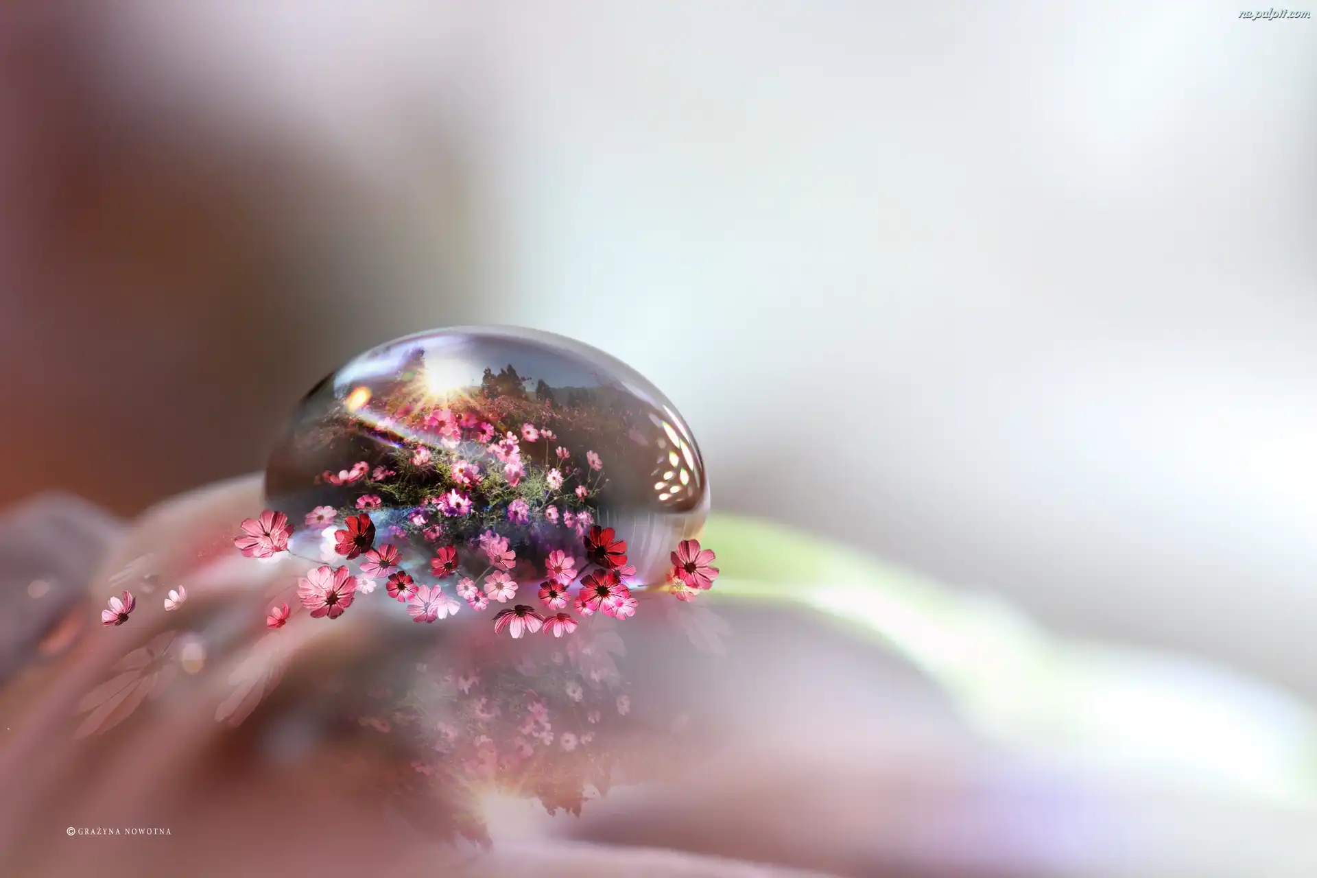 Fotomontaż, Kwiaty, Wody, Kropla, Makro Na Pulpit