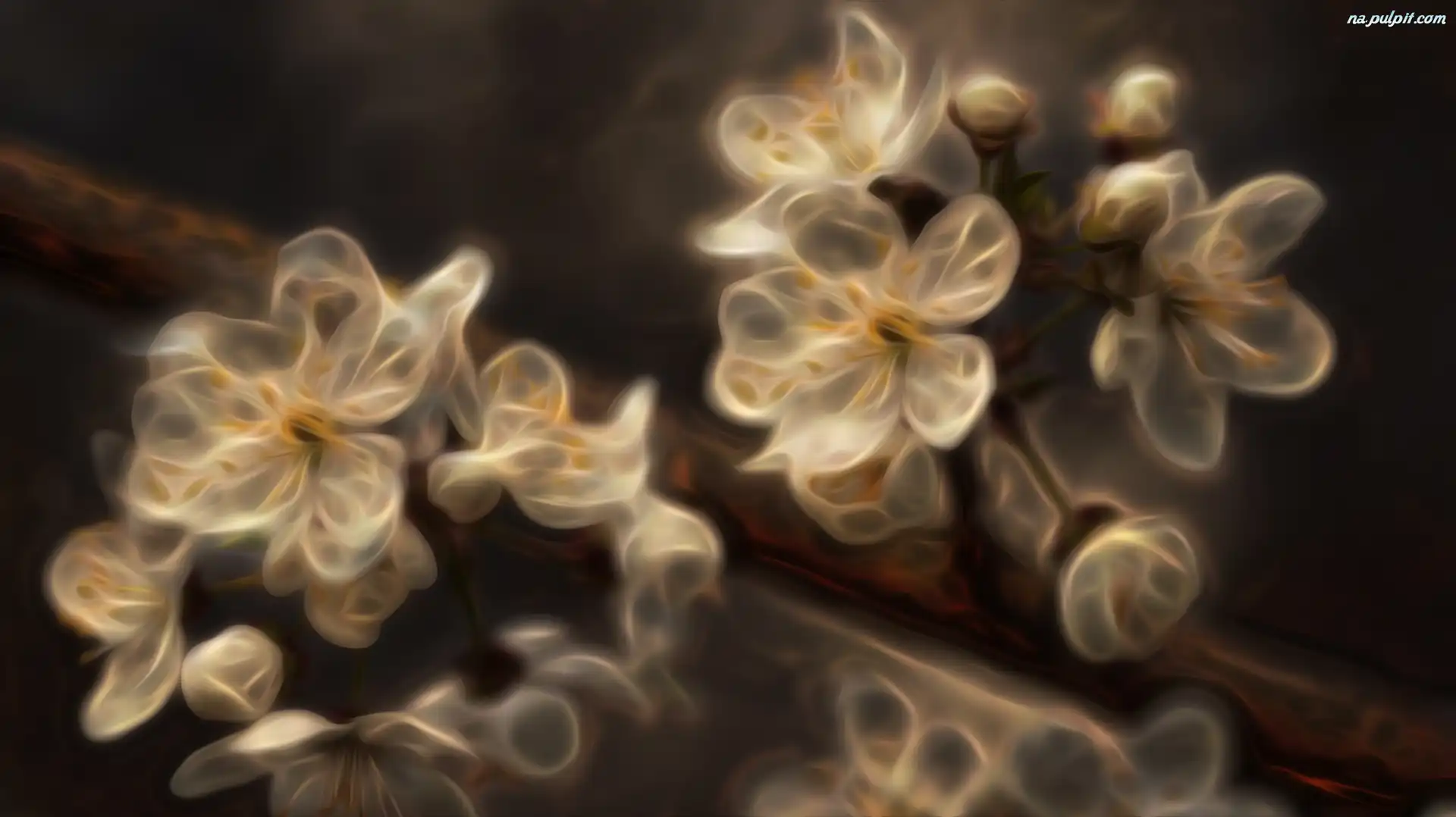 Fractalius, Kwiaty, Białe, Gałązka Na Pulpit