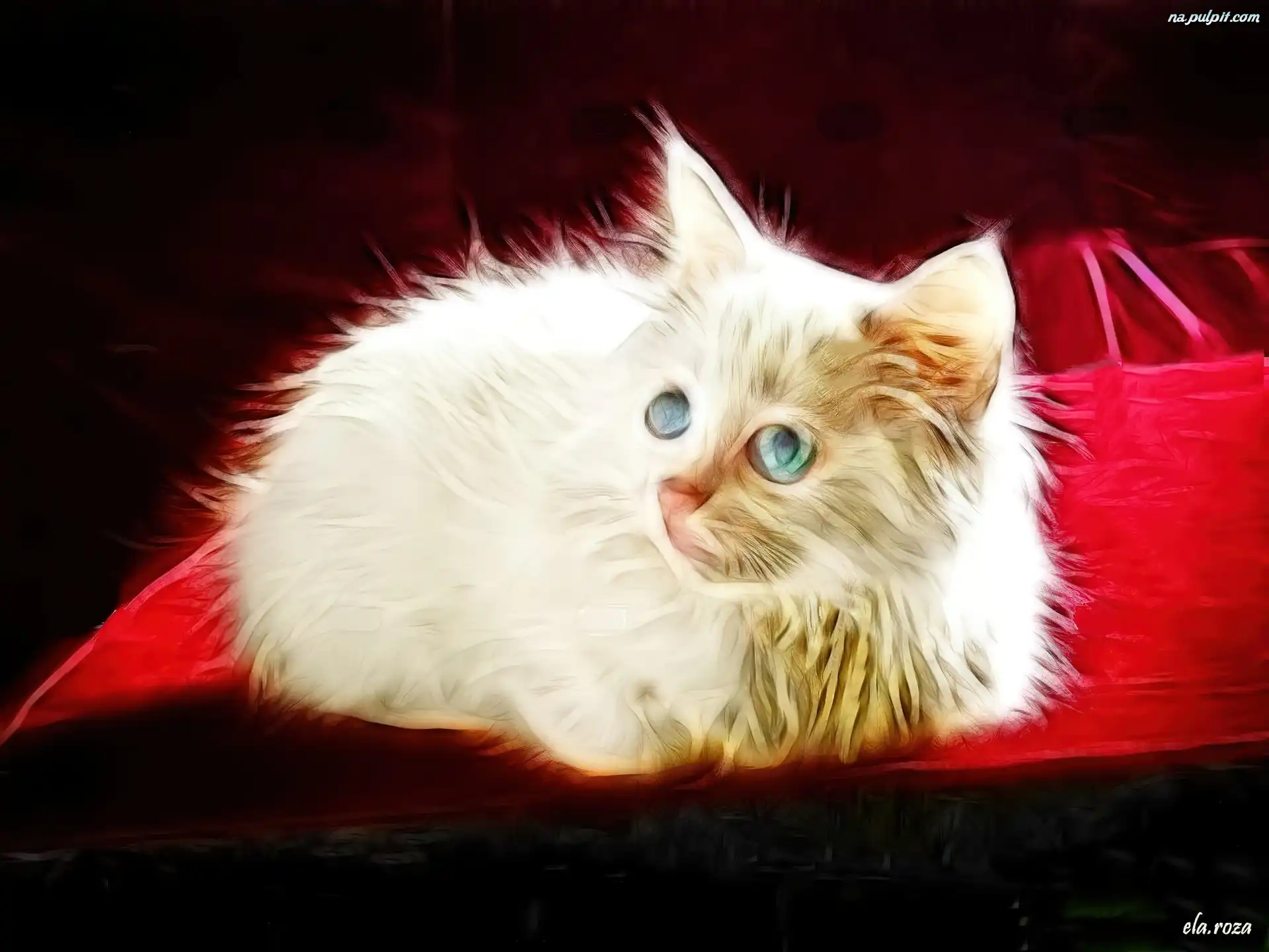 Fractalius, Puszysty, Biały, Kotek Na Pulpit