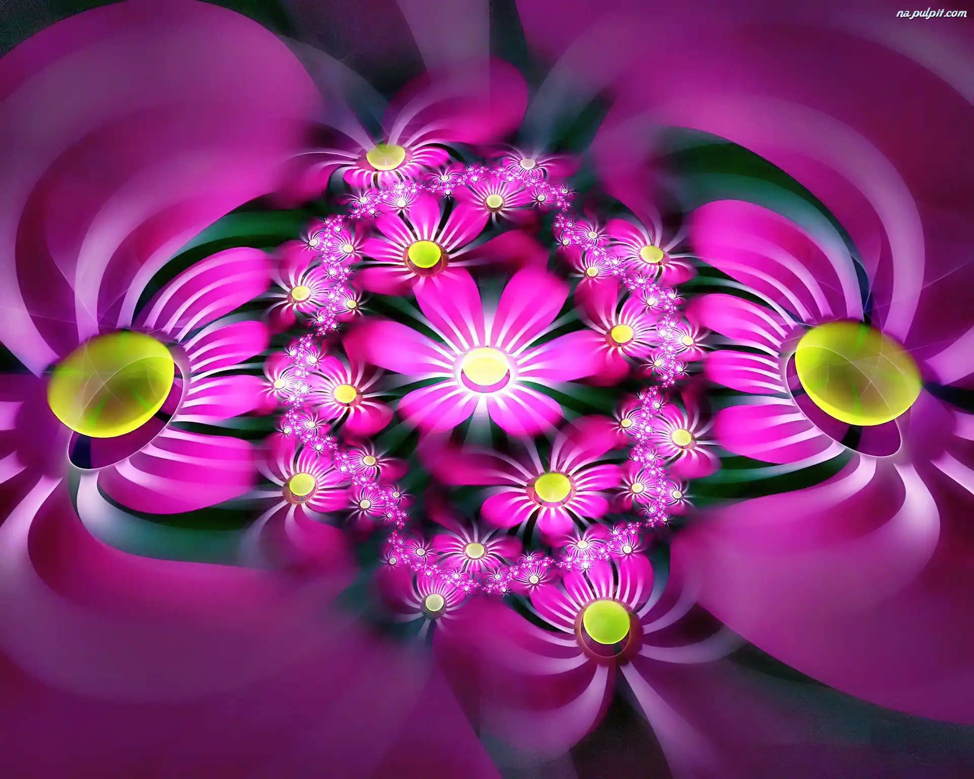 Fraktal, Żółte, Fioletowo, Kwiaty Na Pulpit
