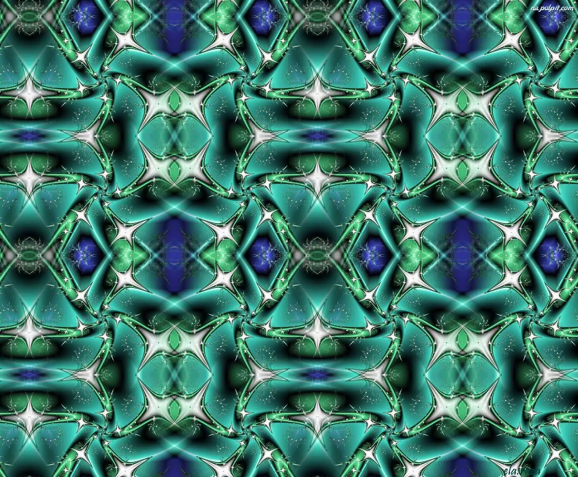 Fraktale, Niebieskie, Zielono, Wzory Na Pulpit